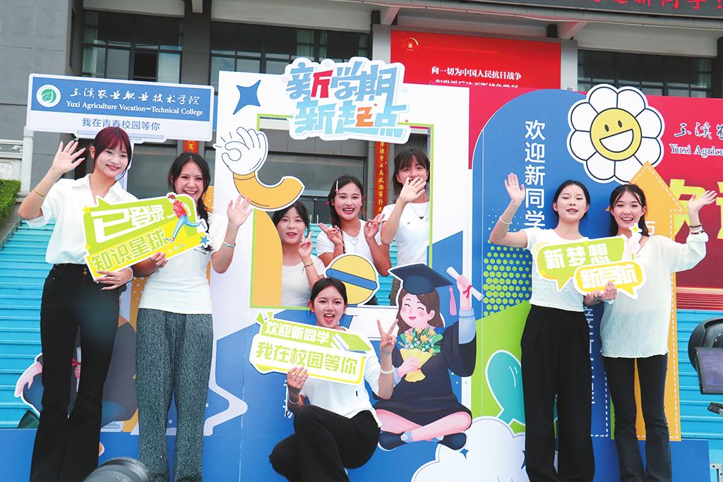高效迎新暖人心 “从车站到宿舍全程都有志愿者帮忙提行李、指方向。老师耐心解答我的问题,感觉特别温暖,就像回到家一样。”来自楚雄的新生李同学刚办完报到手续,对学校的迎新服务赞不绝口。 为确保本次迎新工作高效有序,玉溪农职学院提前谋划、周密部署,将“以生为本”理念贯穿迎新全过程。今年,学院进一步简化新生报到流程,依托数字化平台将信息采集、缴费等大部分手续转移至线上,新生提前通过手机即可完成预报到,大幅减少现场办理时间,避免长时间排队等候。 报到当天,校园内设置了清晰的指示牌,学院各部门通力协作,为新生提供“一站式”服务,极大地方便学生办理各项入学手续。学院还专门开通“绿色通道”,为家庭困难学生提供便捷的入学服务,确保每一名新生都能顺利入学,充分体现了玉溪农职学院的人文关怀和责任担当。 迎新现场,一抹抹“志愿红”成为校园里最亮丽的风景线。从车站接待到校园引导,从手续办理到行李搬运,志愿者们以真诚的笑容和耐心的解答,通过实际行动诠释着“奉献、友爱、互助、进步”的志愿精神,温暖着每一名新生,保障了迎新工作高效、顺畅、有序进行。 入学教育筑根基 9月1日至5日,学院围绕“为党育人、为国育才”根本任务,精心组织开展新生入学教育系列活动,通过“线上+线下”相结合的方式,为新生打造了一堂堂内容丰富、形式多样的“开学第一课”。 学院组织全体师生观看纪念中国人民抗日战争暨世界反法西斯战争胜利80周年大会实况直播,进一步激发学生的爱国热情与民族自豪感,引导其树立正确的历史观、民族观、国家观,增强时代责任感与使命感。 围绕“安全护航成长,法治守护校园”主题,学院开展了安全教育,为学生普及法律法规、反诈防骗等知识。 此外,还开展行为养成教育与校规校纪学习,通过学习网络行为规定、学生行为准则等内容,引导学生自觉规范言行,养成良好的学习和生活习惯,营造风清气正的校园环境。