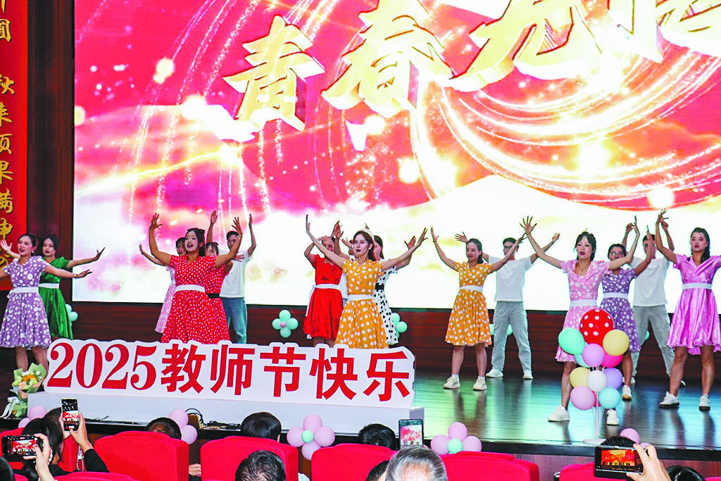 9月10日,玉溪市民族中学围绕“以教育家精神铸魂强师,谱写教育强国建设华章”主题,在学校报告厅举行教师节庆祝活动。全体教职工齐聚一堂,共庆属于教育工作者的节日,凝聚育人初心与奋进力量。 活动伊始,教师节专题视频以“坚守与成长”为主线,带领全场师生重温了许多温暖瞬间。镜头里教师坚守讲台的身影,学生课上专注的眼神,以及一句句“祝福老师节日快乐”的话语,生动诠释了玉溪民中教师的责任与担当。 学校党委书记张延强在致辞中向全校教师致以节日的问候,强调教育家精神是教师成长的精神灯塔,鼓励大家以高尚师德涵养初心,以扎实学识培育英才,为推动学校高质量发展贡献力量。 表彰环节,学校对2025学年省级、市级比赛获奖教师,校级优秀教师、优秀年级主任和班主任,校级学科带头人、骨干教师以及“兴滇英才”教学名师进行表彰,并颁发荣誉证书。获奖教师代表上台分享教育心得,传递扎根教学、潜心育人的坚定信念,赢得台下阵阵掌声。 “我的育人故事”分享活动中,支教教师代表胡伟、优秀教师代表王晓艳结合自身经历,讲述了与学生相处、帮助学生成长的暖心故事,展现了教师的教育情怀。 此外,还举行了师徒结对仪式,传承玉溪民中“传帮带”优良传统。全体教师在校长带领下庄严宣誓,表明争做“四有”好老师、勇担育人使命的决心。 在文艺表演环节,青年教师、毕业校友、教职工子女通过精彩的舞蹈和歌曲表演,为本次教师节庆祝活动画上了圆满的句号。