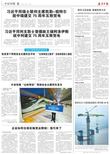 习近平同瑞士联邦主席凯勒-祖特尔就中瑞建交75周年互致贺电
