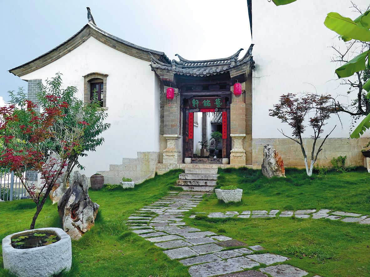 一场抢救性修缮 艺铭轩这座老宅始建于20世纪40年代,是华宁城里少有的“走马转角楼”建筑。然而在前几年老城区改造中,它一度面临被拆除的命运。“老宅位于县城大街,当时要是拆了,就太可惜了。”玉溪知名收藏家、艺铭轩负责人张洛滔感慨道。 2024年,张洛滔与这座老宅的相遇,让老宅的命运有了转机。从小在家乡老宅中长大的张洛滔,对老房子有着刻进骨子里的情怀。他说:“我这一生最喜欢传统的四合院,要是没有一栋老房子相伴,可能我一辈子都会心不安。”带着这份执念,他与合伙人张兴宏一起签下协议,开启了一年多的抢救性修缮。 修缮过程中,坚持“修旧如旧”的原则,张洛滔倾尽全力,从各地寻来30吨石头铺就庭院的地板,用装了3辆车的老门窗还原庭院的木质肌理,连墙上的砖缝都用传统工艺细细填补。他说:“老房子留在世间不容易,不去修缮会觉得遗憾,我只是做点力所能及的保护工作。”他在布局上巧妙参考传统民居格局,既保留古色古香的韵味,又融入现代的便利与舒适。装饰上更是匠心独运,每一件摆设都经过精心挑选,尤其将多年收藏的老匾额、老石头、老对联和民间书画等300余件老物件融入其中,以彰显老宅的文化底蕴。 修缮后的艺铭轩,总占地三亩,主体建筑500多平方米,除保留老宅原貌外,张洛滔还扩建了两个院落,前面是花园,后面是内院,采用苏州园林的造景方式,种上几棵树,养上一池鱼,处处透着“诗酒年华”的雅致。正厅前的照壁别出心裁地留出一个圆洞,将前院和内室巧妙连接,形成“屋内屋外皆风景”的独特景致。临街区域设有茶吧和小吃区,后院则是中餐区,小阁楼、小花园,与栽种的花草相映成趣,充满大自然气息,形成了浓郁的文艺复古风。今年3月,经过精心修缮的艺铭轩正式开业,这座老宅终于在烟火气中重获新生。