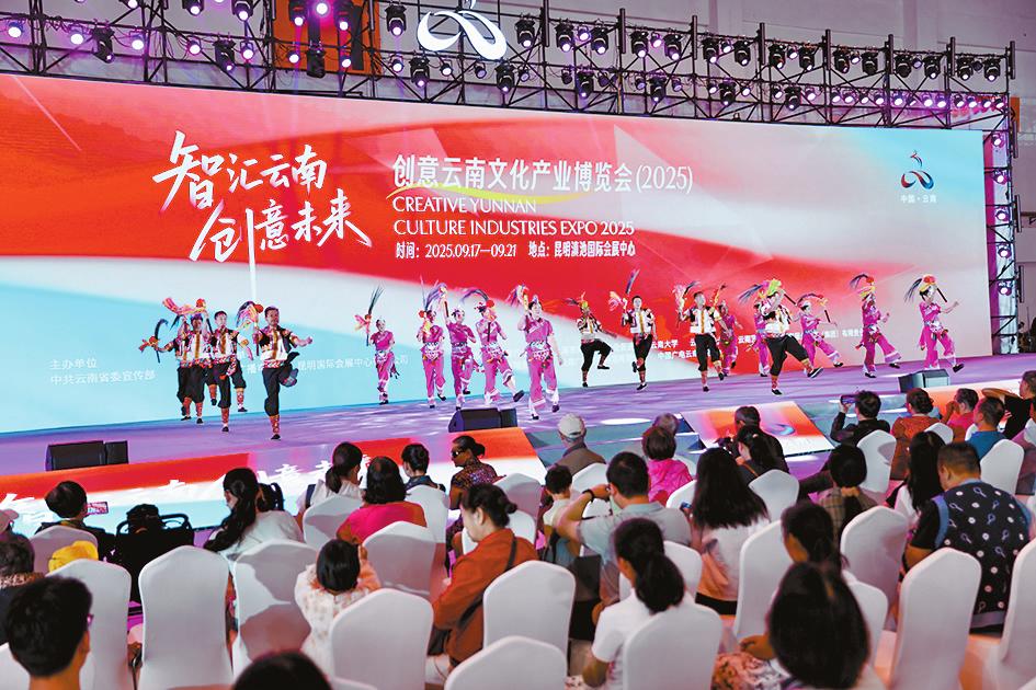 本报讯(记者 顾世丹)9月21日,创意云南文化产业博览会(2025)“文化中国行”主题宣传活动暨惠民演出玉溪专场在昆明滇池国际会展中心11号馆主舞台举行。极具玉溪特色的文艺展演,向现场观众展示玉溪深厚的文化底蕴和多彩的民族风情。 演出在喜庆活泼的花灯歌舞《赶街子》中热闹开场,演员们用轻盈的舞步,生动展现了玉溪民间赶集的热闹场景和生活气息,瞬间将观众带入那充满烟火气的市井画卷,让观众感受到“花灯之乡”的独特韵味。随后,彝族舞蹈《龙抬头》、蒙古族群舞《喀卓情韵》等节目依次上演,以灵动的舞姿和富有张力的节奏,展现了玉溪多民族文化交融与共生之美。其中,彝族舞蹈《龙抬头》以铿锵的节奏和豪迈的舞姿,展现出彝族人民对自然的敬畏与对生命的礼赞。蒙古族的群舞《喀卓情韵》则为现场观众带来别样的风情,在深情的音乐中,演员们用舒展的肢体语言,描绘出草原民族的热情与豁达。 演出期间,观众沉浸其中,掌声此起彼伏。来自广东的游客张家灿被玉溪多彩的民族风情深深吸引。他说:“专场演出节奏紧凑、节目丰富,不仅立体呈现了玉溪多元的文化魅力,更让我对玉溪的生态与人文之美有了更深的了解。有机会我一定到玉溪走一走、看一看,感受玉溪的自然风光与民族风情。” |