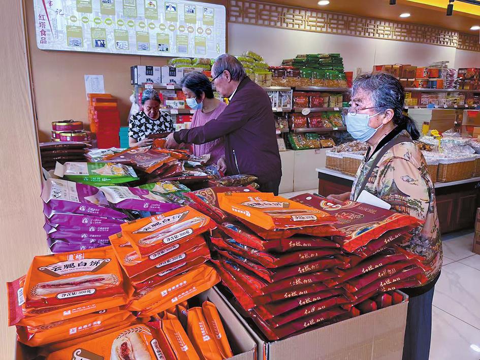 本报讯(记者 田一岚 常云 文/图)随着中秋节临近,各式各样的月饼已经摆上了玉溪商家的柜台和货架,月饼销售市场进入了一年中最繁忙的季节。 近日,记者来到位于中心城区聂耳路上的红塔食品销售门店,柜台上摆满了火腿、水果、豆沙等各式各样口味的月饼,吸引了众多市民前来选购。市民张先生告诉记者,他买了一些火腿月饼,准备通过快递送给江苏的亲戚、朋友。 该店工作人员夏卫萍告诉记者,火腿月饼作为云南老味道,不仅是许多云南人不变的中秋味觉记忆,也得到了不少省外消费者的青睐。为了满足更多市民的喜好,店里每年的月饼口味都在推陈出新。今年就新推了一款五黑月饼,用黑芝麻、黑糯米粉、黑米、黑豆粉、黑枸杞制作而成,主打粗粮养生。 夏卫萍介绍,为了突出云南特色,今年依旧推出野生菌月饼,在火腿月饼的基础上,添加了松茸、鸡枞,独特的味道也“圈粉”无数。此外,今年店里还推出了木糖醇月饼,血糖、血脂高的消费者可根据自身状况适当食用。以往,传统月饼基本都是大个头,今年店里推出了迷你月饼,可以“一口一个”地吃,分量刚好,避免了浪费。价格方面,根据重量不同,品种不同,价格基本在2.5元到100多元。虽然中秋节还没有到,但是市民已经来尝鲜了,销量持续攀升。 每逢中秋,黄澄澄的江川大荞饼在市场上必有一席之地。在中心城区兴鑫集贸市场,几家售卖江川大荞饼的摊位,吸引了不少消费者前来选购。经销商张纯波告诉记者,老百姓最喜欢的是五仁、豆沙口味,不过今年推出了山楂馅、杨梅馅等几个新口味,酸酸甜甜,深受年轻人喜欢。大荞饼的价格在10元到28元,礼盒可自由搭配。张纯波表示,现在大荞饼的销量一天比一天好,因为临近中秋节,大家都在忙着准备中秋伴手礼送亲朋好友,最近这段时间,每天大概可以卖出200多个大荞饼。 |