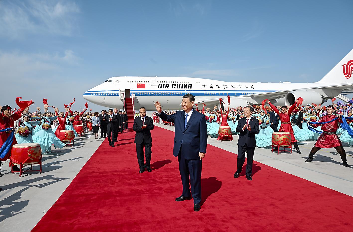 新华社乌鲁木齐9月23日电 中共中央总书记、国家主席、中央军委主席习近平率中央代表团23日下午乘专机抵达乌鲁木齐,出席新疆维吾尔自治区成立70周年庆祝活动。习近平作为中共中央总书记、国家主席、中央军委主席率中央代表团到新疆出席新疆维吾尔自治区成立庆祝活动,在党和国家历史上是第一次,充分体现了党中央对新疆工作的高度重视、对新疆各族干部群众的亲切关怀。 中共中央政治局常委、全国政协主席、中央代表团团长王沪宁,中共中央政治局常委、中央办公厅主任蔡奇同机抵达。 金秋时节,新疆大地处处洋溢着丰收的喜悦。乌鲁木齐天山国际机场鼓乐喧天,气氛热烈。 14时20分许,习近平乘坐的专机在天山国际机场降落,等候在停机坪的新疆各族各界群众热烈欢呼。习近平走出舱门,向欢迎群众挥手致意。 新疆维吾尔自治区党委书记陈小江、自治区人民政府主席艾尔肯·吐尼亚孜、自治区人大常委会主任祖木热提·吾布力、自治区政协主席努尔兰·阿不都满金、新疆生产建设兵团政委何忠友等在舷梯下迎候。习近平走下舷梯时,少先队员献上鲜花。各族群众代表身着民族服饰,载歌载舞,欢迎总书记的到来,表达对总书记的衷心祝福。 乌鲁木齐市充满节日的喜庆氛围。从机场到住地沿途主要街道两旁花团锦簇、彩旗飘扬,各族群众手持红旗,齐声欢呼,表达欢迎和感激之情。习近平向沿途群众频频挥手、亲切致意。 担任中央代表团副团长的中共中央政治局委员、中央统战部部长李干杰,全国人大常委会副委员长雪克来提·扎克尔,国务委员谌贻琴,全国政协副主席王东峰,中央军委委员刘振立,陪同出席活动的中共中央政治局委员、国务院副总理何立峰,中共中央书记处书记、国务委员王小洪等同机抵达。 中央代表团成员同期抵达,成员包括中央和国家机关有关部门,军队有关单位,内蒙古、广西、西藏、宁夏4个自治区和对口支援新疆的有关省市负责同志等。 |