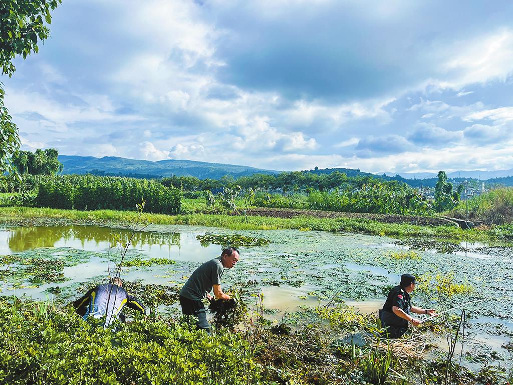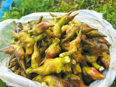 本报讯(记者 田一岚 常云 文/图)民间有“八月中秋起菱角”的说法,菱角鼓鼓的个头,看上去像个元宝,和板栗、莲藕并称为“秋三宝”。时下,江川区宁海街道螺蛳铺村与石岩哨村的湖滨带菱角飘香,迎来了一年一度的成熟季。 水面上,翠绿的菱盘层层叠叠,饱满的菱角就藏在叶片下面。螺蛳铺村村民王江琼和同伴们一起来采摘菱角,他们有的用钉耙把菱盘打捞至水边,就地采摘菱角;有的则穿上水鞋探入水中,轻拨菱叶,顺势托起菱藤,随着“哗啦”一声水响,藤蔓出水,根部缀着的成熟菱角在阳光下闪闪发亮,新鲜度满分。王江琼告诉记者,每年中秋节前后是吃野生菱角的最佳时节,想吃菱角的村民都会来摘上一些尝尝鲜。 据悉,菱角又称“水中落花生”,果实中含有丰富的蛋白质、不饱和脂肪酸、多种维生素和微量元素,营养价值很高。生吃口感脆甜,煮熟以后口感和板栗相似,软糯可口。江川区宁海街道螺蛳铺村党总支委员罗圣耀介绍,野生菱角的生长适宜水温在20摄氏度到30摄氏度之间,水深60厘米左右。得益于生态优良的水域优势,螺蛳铺村与石岩哨村湖滨带交界处成为野生菱角生长的“天然乐园”,这些自然馈赠的“水中珍宝”无需人工种植,在湖水的滋养下自然生长,既是一道独特的生态景观,也是当地人对中秋味道的独特记忆。 |