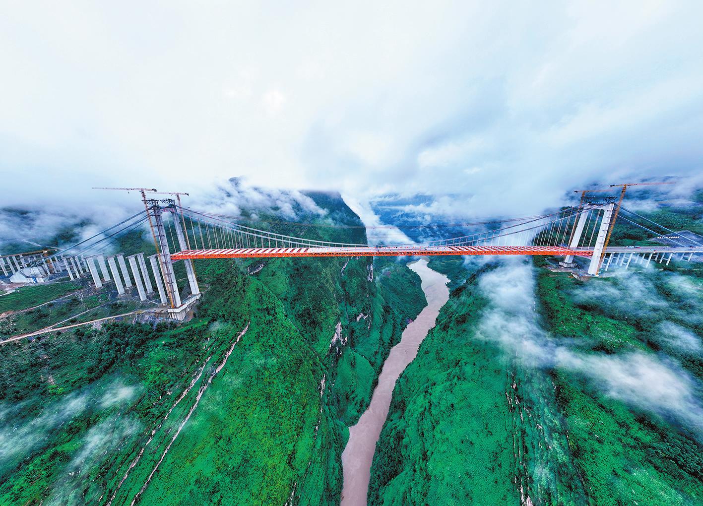 9月23日,由中铁广州局等单位承建的贵州安(安顺)盘(盘州)高速天门特大桥成功合龙。天门特大桥是安顺至盘州高速公路的重要控制性工程,大桥全长1553米,桥面距离峡谷水面约560米。