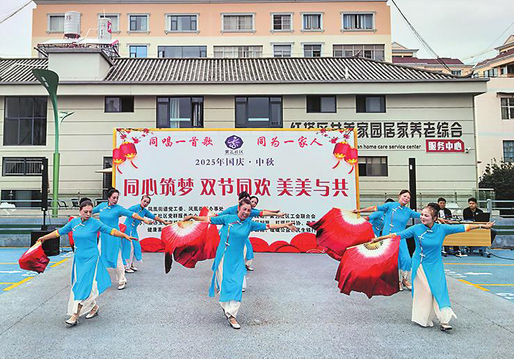 本报记者 黄思敏 摄 |  | | | 9月28日,红塔区凤凰街道联合紫艺社区在共美家园小区举办2025年国庆·中秋“民族团结一家亲”活动。活动现场,文艺表演吸引了不少居民驻足观看,健康服务与便民义剪区域迎来了众多居民体验,美食共享环节大家围聚一堂共品美食……各族居民欢聚一堂,感受民族团结一家亲的温暖氛围,在交往交流交融中铸牢中华民族共同体意识。 本报讯记者 张思思 摄 |