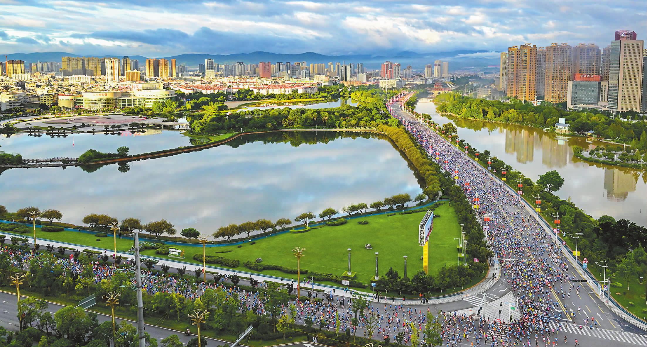 □ 本报记者 白诚颖 10月3日6时,玉溪中心城区南北大街车水马龙,从酒店、居民小区、街巷拐角等涌出的人流纷纷向玉溪马拉松起点聚集。行车道上,汽车、摩托车、电动自行车随车流缓缓向前;人行道上,身着运动服的跑者行色匆匆。他们的脚步与玉溪这座城市的心跳同频,赶赴一场马拉松。 7时30分,比赛发令枪响起,2万人在动感十足的音乐声中分批跑上赛道,主持人激情的喊声、跑者的欢呼声、啦啦队的加油声,让充满动感的赛道变得热闹非凡。这不仅仅是一场比赛,更是一场城市综合能力的“大考”与“秀场”。