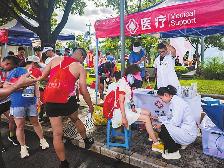 志愿者为完赛选手提供贴心服务。