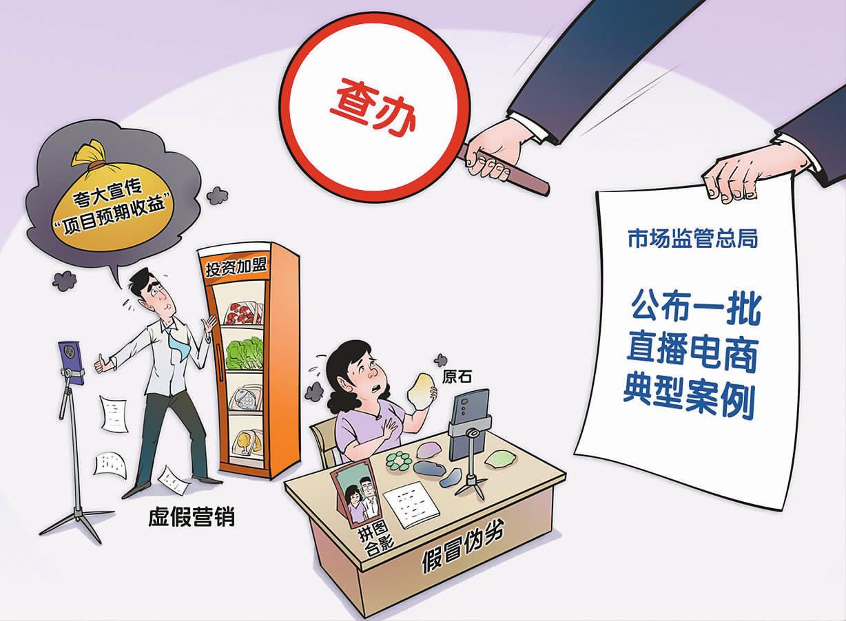 市场监管总局9月23日举行直播电商监管专题新闻发布会,集中发布一批近期各地市场监管部门查办的直播电商领域典型案例,引导直播电商经营主体进一步依法合规经营,净化行业生态。 曹一/作 (新华社9月23日发)