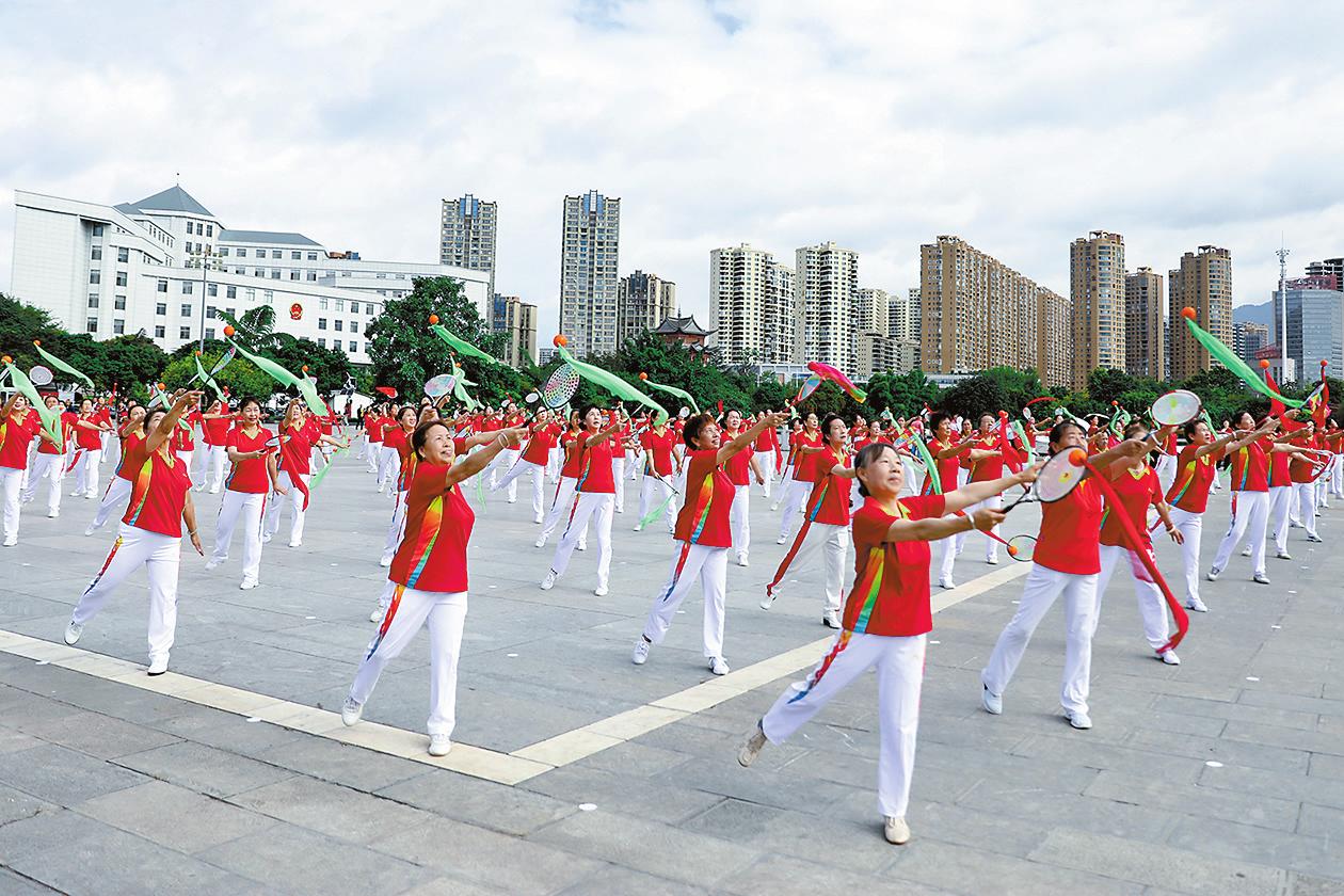 本报讯(记者 白诚颖)10月10日,以“学回信精神·助改革发展”为主题的玉溪市离退休干部展览展示展演活动在玉溪聂耳广场举行,来自市直单位和部分县(市、区)的500余名柔力球、太极拳、健身气功和书画爱好者参加了展览展示展演。 此次活动由玉溪市委老干部局主办,包括太极拳、太极伞、太极扇、柔力球、健身气功等节目表演,同步展出玉溪市老干部诗书画协会和9个县(市、区)老干部联合创作的“纪念抗战胜利80周年”主题百米书画长卷,旨在弘扬中华优秀传统文化,展现我市离退休干部健康向上、积极作为的精神风貌。活动吸引了不少市民围观。 活动现场,展演节目精彩纷呈。二十四式太极拳的表演展现了太极拳的柔美与力量,健身气功展现了气功的智慧与精髓,柔力球在《抚仙欢歌》优美的旋律里尽显高超技艺。在《我爱你,中国》的音乐声中,不少市民在百米书画长卷前驻足观看,拍照留影。一个个精彩的表演,一幅幅多彩的画卷和书法作品,表达了广大离退休干部对国家和民族深沉的爱。 参演代表石云秀已练习了10年的柔力球。她告诉记者,为了这次展演,整个国庆期间她和队友们都在练习,力求把节目编排得更好,把健康快乐的生活方式传递给更多市民。“太极拳运动非常健康,通过展演可以提高我们打拳的技能和水平。”玉溪市老年大学太极拳教师李艳芳告诉记者。 |