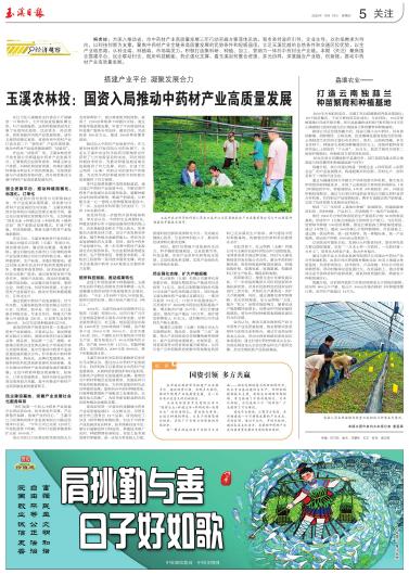 在江川区九溪镇矣文村委会千斤坡脚的一片林地中,七叶绞股蓝根藤纵横交织,叶片绿意盎然。这块种植基地因为汇聚了包括国企投资、民企资本、药企需求、院所创新在内的产业发展资源,成为玉溪贯彻落实省委、省政府将中药材产业打造为第二个“烟草型”产业决策部署,推动中药材产业高质量发展的“试验田”。 在这块“试验田”里,玉溪农林投资开发有限公司搭建起中药材产业发展平台,汇聚制药企业原料需求、种植主体生产资源、科研机构创新资源,有效打通原料种植与药品生产的供需渠道,实现创新链与产业链的有效对接,首开国资推动玉溪中药材产业高质量发展先河。 国企搭建平台,推动种植规模化、标准化、订单化 “这是我市国有投资公司积极响应省、市产业发展决策部署,首次参与中药材产业发展的生动实践。”玉溪农林投资开发有限公司副总经理王春武介绍,通过充分发挥国企资源整合作用,立足构建“国有企业+种植主体+科研机构+制药企业”的产业联动发展模式,打通产销链,布局创新链,探索玉溪中药材产业发展新路径。 在这当中,玉溪农林投资开发有限公司通过对接红云制药(玉溪)有限公司,锁定需求品种,确定供应数量、收购价格;通过对接包括玉溪市江川区巽帆农林产业发展有限公司在内的种植主体,确定种植面积、生产标准、采收时限要求;通过对接玉溪市农业科学院药用植物研究所,明确良种选育供给、技术标准制定、科技示范推广需求;通过发挥国有资产投资作用,保障产品收购,推动科技赋能,化解市场风险。立足整合国有投资、制药企业、种植主体、科研机构资源,打造中药材产业发展平台,推动中药材种植规模化、订单化生产。 通过创新中药材产业发展路径,自今年开始,玉溪农林投资开发有限公司在江川区、红塔区、新平县、易门县、元江县联合种植企业、专业合作社、种植大户种植七叶绞股蓝230亩,计划明年发展至2800亩,2027年实现种植面积过万亩。 谈及国有资产投资如何进一步推动中药材产业发展时,王春武认为,通过探索和实践可以看到,围绕中医药行业实施增品种、提品质、创品牌“三品”战略,对接重点制药企业优势品种生产所需高价值大宗原料需求,是平台推动中药材产业高质量发展的重点方向;针对推动中药材种植差异化、特色化、品牌化发展需求,对接科研院所优质创新资源布局创新链,是平台推动中药材产业高质量发展的重要支撑;立足中药材种植实现规模化、标准化、订单化发展需求,坚持市场化运营原则实现利益方共赢,是平台推动中药材产业高质量发展的重要抓手。 民企建设基地,完善产业发展社会化服务体系 “我们是第一个加入中药材产业发展平台的民营企业,技术需求有支撑,产品销售有保障,发展产业有信心。”玉溪市江川区巽帆农林产业发展有限公司副总经理李开志说,“今年公司已完成120亩七叶绞股蓝林下种植,明年计划把种植面积扩大到1000亩。” 该公司在江川区林业和草原局的大力支持和帮助下,通过林地使用权流转,获得了1200亩林地林下种植许可权。通过积极争取政策支撑,申报了中央财政林业科技推广服务专项支持。截至目前,完成投资300余万元,建成200亩种苗繁育基地。 通过加入中药材产业发展平台,在玉溪农林投资开发有限公司的协调下,企业从玉溪市农业科学院药用植物研究所获得了七叶绞股蓝良种支持,同时得到种植技术培训,为推动种植基地高端化发展提供了有力支撑。同时,打通了红云制药(玉溪)有限公司的原料产供渠道,为实现中药材种植风险可控和稳定发展提供了有力保障。 李开志指着枝繁叶茂的绞股蓝说,通过建立中药材产业发展平台,不断完善中药材产业发展社会化服务体系,破解种植企业科技需求瓶颈,畅通产销渠道,让种植企业一心一意投入到种植基地建设中。下一步,企业将在科研部门的支持下,引种100亩猫爪草。 谈及如何进一步提档升级种植基地时,李开志认为,中药材生长周期较长,种植区域多分布于基础设施相对滞后的山区,企业基础建设和生产投入较大。如果能加大政策支持力度,设立产业发展支持基金,提升种植企业融资能力,将会为企业发展提供有力支撑。同时,依托中药材产业发展平台,进一步完善中药材产业发展社会化服务体系,为企业提供基地建设规划、生产管理规范、种植技术规程、采收加工标准等一系列技术服务支撑,将会为企业推进中药材GAP基地认定提供有力支撑。 院所科技赋能,推动成果转化 走进七叶绞股蓝林下种植基地,玉溪市农业科学院正高级农艺师沐婵就一头扎进藤蔓交织的田地中查看植株生长情况。她说:“今年3月份种下的七叶绞股蓝,按照目前的长势,预计每亩产量可达1吨以上。” 2024年,玉溪市农业科学院携手红云制药(玉溪)有限公司,从四川省广元市引进绞股蓝种苗开展多点试种实验。试种实验结果显示,在玉溪,绞股蓝适宜在海拔1600米至2200米的林下种植,亩产根茎干品200公斤至300公斤,总苷含量14%至20%,产量和总苷含量均高于其他主产区。按目前每公斤40元市场均价计算,亩产值8000元至1.2万元,扣除种植成本,亩均纯收入4000元至8000元,林下种植效益可观。 玉溪市农业科学院药用植物研究所所长马文彬认为,通过加入中药材产业发展平台,科研机构可以紧密结合中药材产业发展需求,开展种质资源保护和开发利用,为