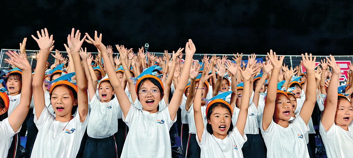 本报讯(记者 李瑞铭 文/图)10月18日,中超第27轮,云南玉昆主场迎战天津津门虎。本场比赛的公益看台迎来了一群特殊球迷——来自澄江市的180名“仙湖卫士”,他们中大部分是小学生,这群小卫士们用童声呐喊点燃赛场,既感受到了足球的快乐,也让绿色的种子在心里生根发芽。 开赛前的暖场环节,在主持人简要介绍后,球场上的大屏幕播放起澄江宣传片,镜头掠过波光粼粼的抚仙湖、澄江化石地世界自然遗产博物馆的宏伟建筑群……随后,头戴抗浪鱼发卡的孩子们用清脆的童声奋力呐喊“乘风破浪”“热血玉昆”“美丽仙湖”等口号,声浪与看台两侧的鼓点交织成独特的生态保护与足球狂欢交响曲。 孩子们还齐唱了《把未来点亮》等歌曲,手中助威花球随节奏轻晃,印有抚仙湖保护和云南玉昆队元素的展示牌依次扬起。随着现场鼓点骤密,孩子们应声起身,踩着铿锵节拍整齐起伏,掀起一道道跃动的人浪,歌声、鼓声与跃动的身影交织,将现场观众的观赛热情推向高潮。 活动中,球迷们争相与公益看台前排的两个抚仙湖虫人偶击掌互动,大家纷纷举起手机记录下这一充满童趣的画面。 来自澄江市广龙小学的李玥熹难掩兴奋:“第一次现场看云南玉昆队踢球让我心跳加速,那些奋力奔跑的球员教会我,守护绿水青山就像守护足球场上的胜利一样需要坚持。” 澄江市委宣传部副部长、市委文明办主任郭云燕说:“绿茵场上的拼抢冲刺和绿水青山的默默坚守,都需要拼搏、奉献和永不放弃的团队精神。我们希望通过本次公益看台活动,倡导更多人加入我们,共筑绿茵梦想,共护绿水青山。” |