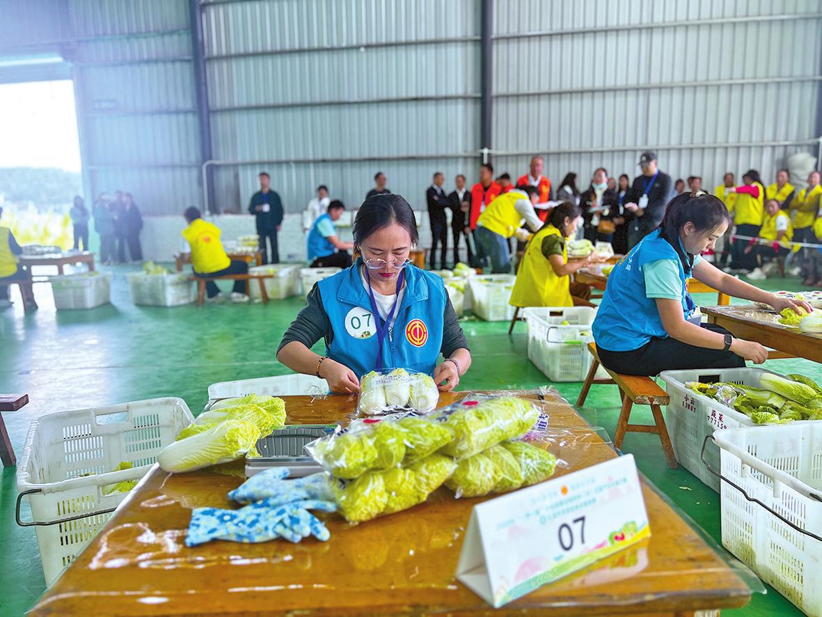 本报讯(记者 高乾恒 文/图)10月16日至17日,2025年“一带一路”中老铁路沿线四州(市)云菜产业技能大赛暨玉溪市净菜包装技能竞赛在江川区云菜小镇开赛。来自昆明、玉溪、普洱、西双版纳四州(市)的10支代表队、36名净菜包装从业者及相关技术人员同台竞技。 竞赛以“竞艺星云畔 强技兴云菜”为主题,通过“理论考试+实操比武”的方式进行。实操现场,参赛选手就加工包装高山娃娃菜、四季豆进行比拼:15分钟内从40棵娃娃菜中加工10包(每包3棵),需控制每包400—500克、单棵误差极小;10分钟内将10千克四季豆包成10包,每包成品800克,误差不超过5克,且豆子朝向一致、无病虫害。选手手速快且精准,操作声交织,赛场紧张有序。 实操结束后,裁判员随机抽检选手成品评分,并公布获奖名单。 此次竞赛不仅为云菜产业从业者搭建了技能交流与展示平台,更通过以赛促学、以赛促练,切实提升了净菜包装从业者的专业技能水平,激发了行业创新创造活力。作为服务“一带一路”建设与中老铁路沿线产业发展的重要举措,赛事将进一步强化云菜产业工人队伍建设,为推动云菜产业标准化、高质量发展注入动力,助力云菜更好对接国内外市场,擦亮云菜产业品牌。 |