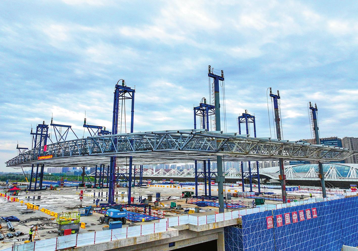 新建上海至南京至合肥高铁南通站高架站房钢结构顺利提升