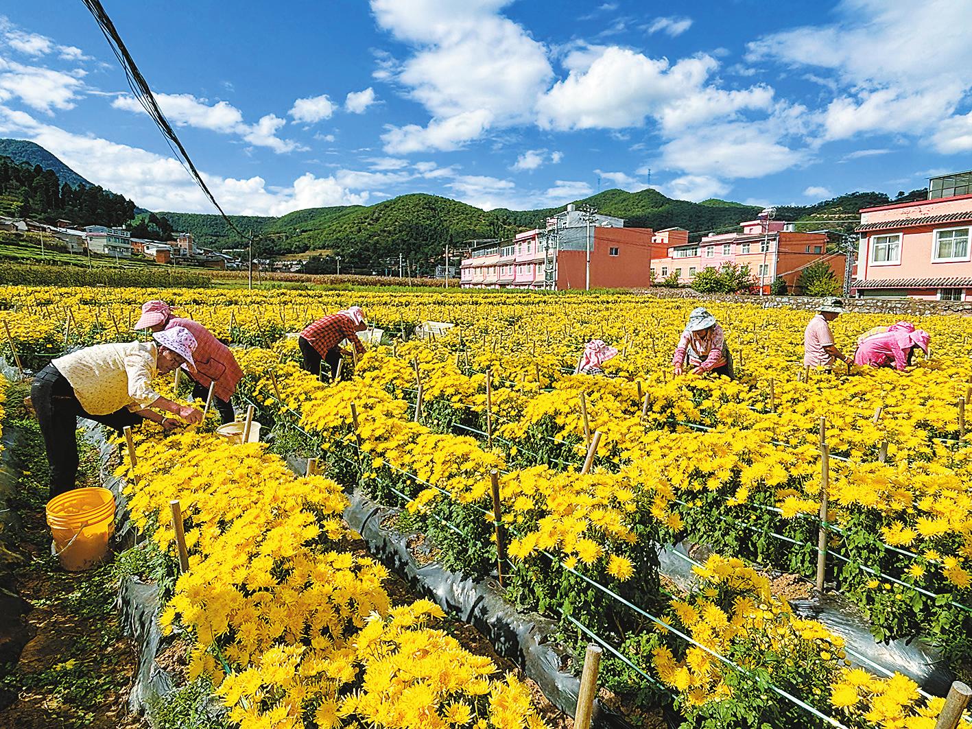 本报讯(通讯员 沐圆岩 王荣珊 范顺梅 特约通讯员 刘大鹏 文/图)10月,易门县小街乡27亩金丝皇菊竞相绽放,金黄的花朵在阳光下熠熠生辉,工人们穿梭其间,娴熟地采摘着成熟的金丝皇菊。 采摘后的金丝皇菊第一时间被送往烤房加工,工人们仔细分拣,随后进入晾晒、烘干环节,整个加工流程规范高效,最大限度留存了金丝皇菊的天然香气、鲜亮色泽与营养成分。采摘工人朱子奎说:“采收季我们来这里务工,既增加了收入,又可以照顾家庭,很方便。” 近年来,小街乡立足本地自然条件,持续推进产业结构优化调整,将金丝皇菊种植作为撬动乡村振兴的特色产业,依托“党总支+村办公司+农户”的发展模式,让“菊花经济”在乡土间落地生根。如今,小街乡的金丝皇菊已进入盛花期。据测算,今年预计实现亩产干花100公斤左右,亩产值可达7000元。 小街村党总支副书记罗海宾说:“我们种金丝皇菊已经4年了,这4年里,从选种、育苗到田间管理,大家一步步摸索、总结经验,技术越来越成熟。今年菊花长势比往年都好,花朵更大、更饱满。初步估算,金丝皇菊总产值能达18万元。” 在小街乡,金丝皇菊不仅是“致富花”,更是乡村发展的“活力花”。小街乡通过举办系列文化活动,吸引游客前来观赏采摘,让金色花海成为乡村旅游的新亮点,实现了农文旅融合发展。从田间地头的丰收,到加工车间的忙碌;从农户脸上的增收笑脸,到乡村焕发的发展活力——这一朵朵金丝皇菊,正悄然铺就一条群众增收、集体壮大、乡村振兴的“黄金路”。 |