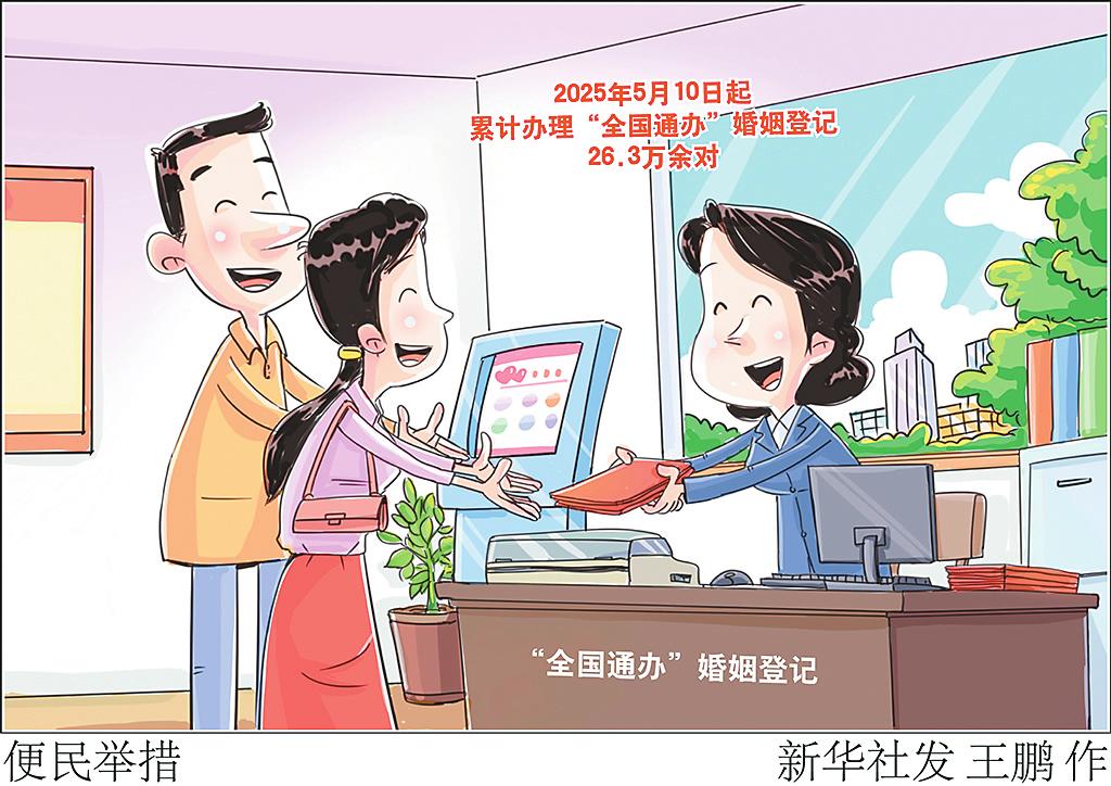 民政部部长陆治原10月10日在国新办举行的“高质量完成‘十四五’规划”系列主题新闻发布会上介绍,从今年5月10日开始,累计办理“全国通办”婚姻登记26.3万余对,极大方便了群众。婚俗改革持续深化,文明健康婚俗风尚正加快形成。 王鹏/作(新华社10月10日发)