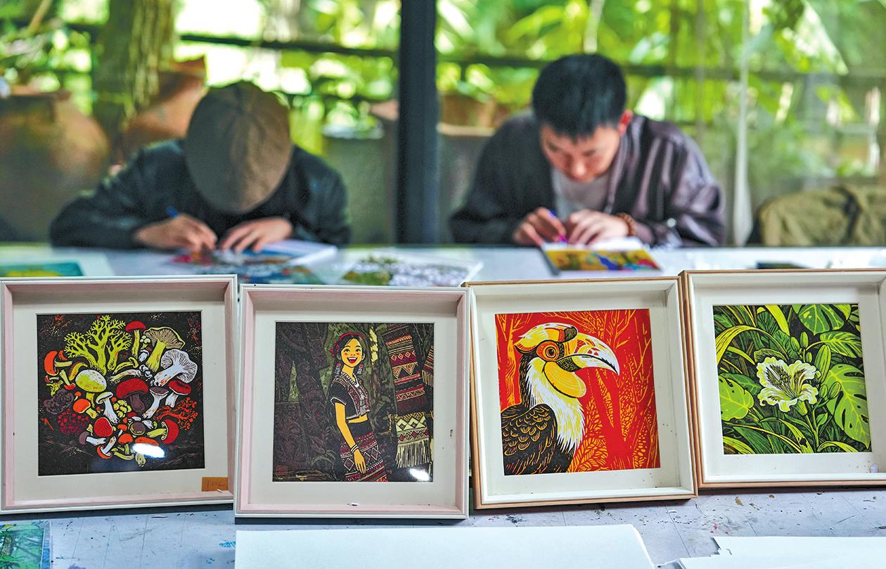 绝版木刻是20世纪80年代末发源于云南普洱的一种创新版画技艺。它在传统套色木刻基础上发展而来,其独特之处在于仅用一块木板,通过边刻边印、逐版递减的方式完成多色套印,当最后一色印制完成后,原版也随之毁弃,无法再版,故称“绝版”。这种技法创作出的作品色彩浓郁饱满,层次感强。普洱绝版木刻深受当地多姿多彩的民族文化和风土人情滋养,风格鲜明,是普洱一张靓丽的文化名片。
