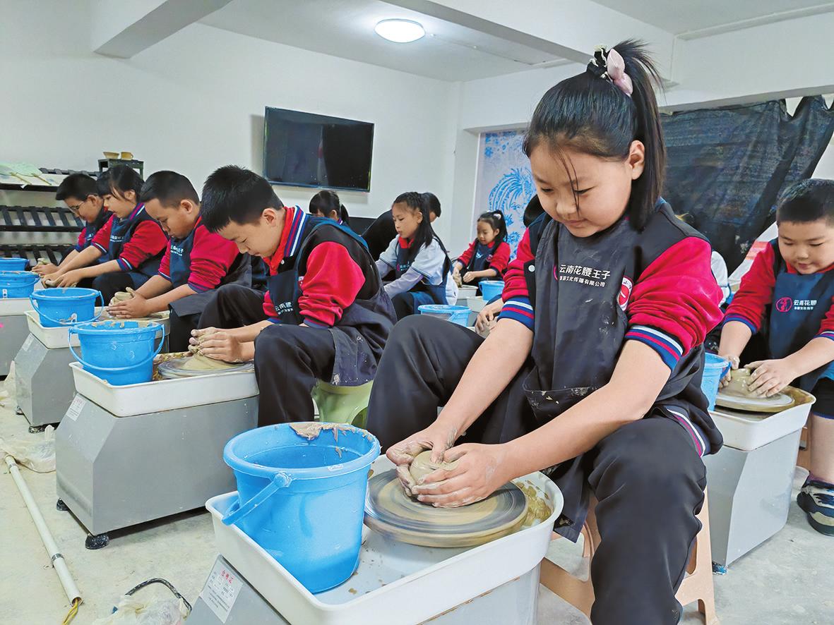 近日,玉溪第三小学带领学生走进玉溪窑址博物馆,以“瓷韵研学行 匠心润童心”为主题开展研学实践活动,通过参观窑址、体验拉坯、临摹青花等环节,让学生了解玉溪窑的历史文化,沉浸式感悟工匠精神。 走进玉溪古窑遗址,斑驳的窑壁、散落的瓷片、古老的制瓷工具,瞬间引起了学生们的兴趣。讲解员结合实物与图片,向大家介绍了玉溪窑的历史沿革、烧制流程以及青花瓷的特色。同学们一边认真聆听,一边近距离观察,记录关键信息。当看到青花瓷展品时,大家更是发出阵阵惊叹。 “双手轻轻扶住泥坯,慢慢向上提拉,保持重心稳定……”拉坯体验环节,在专业陶艺老师的指导下,同学们围坐在拉坯机旁,将湿润的陶土置于转盘中心,双手轻扶,缓缓提拉,把柔软的泥土慢慢拉制成笔筒、小碗、花瓶等。看着自己亲手制作的陶艺品,一名同学感慨地说:“原来做瓷器这么难,要耗费那么多的时间和心血。” 来到绘画区,讲解员向学生们讲解了青花绘画的基本笔法和传统图案寓意。随后,学生们手持毛笔,蘸取颜料,在素白的瓷盘上临摹青花图案。不一会儿,一幅幅充满个性的青花作品跃然盘上。 活动最后,红塔区瓦窑中心小学教师王艳茜通过知识讲解和互动问答,向学生们介绍了玉溪窑的历史地位、制瓷原料的选取、青花瓷的文化影响等内容,让学生们充分了解了玉溪窑的历史意义,激发了学生们对本土文化的认同。 玉溪三小有关负责人表示,学校将组织更多学生到校外开展研学实践活动,让学生在实地探索中开阔眼界、增长知识。 (通讯员 张婵娟 卢和融 文/图) |