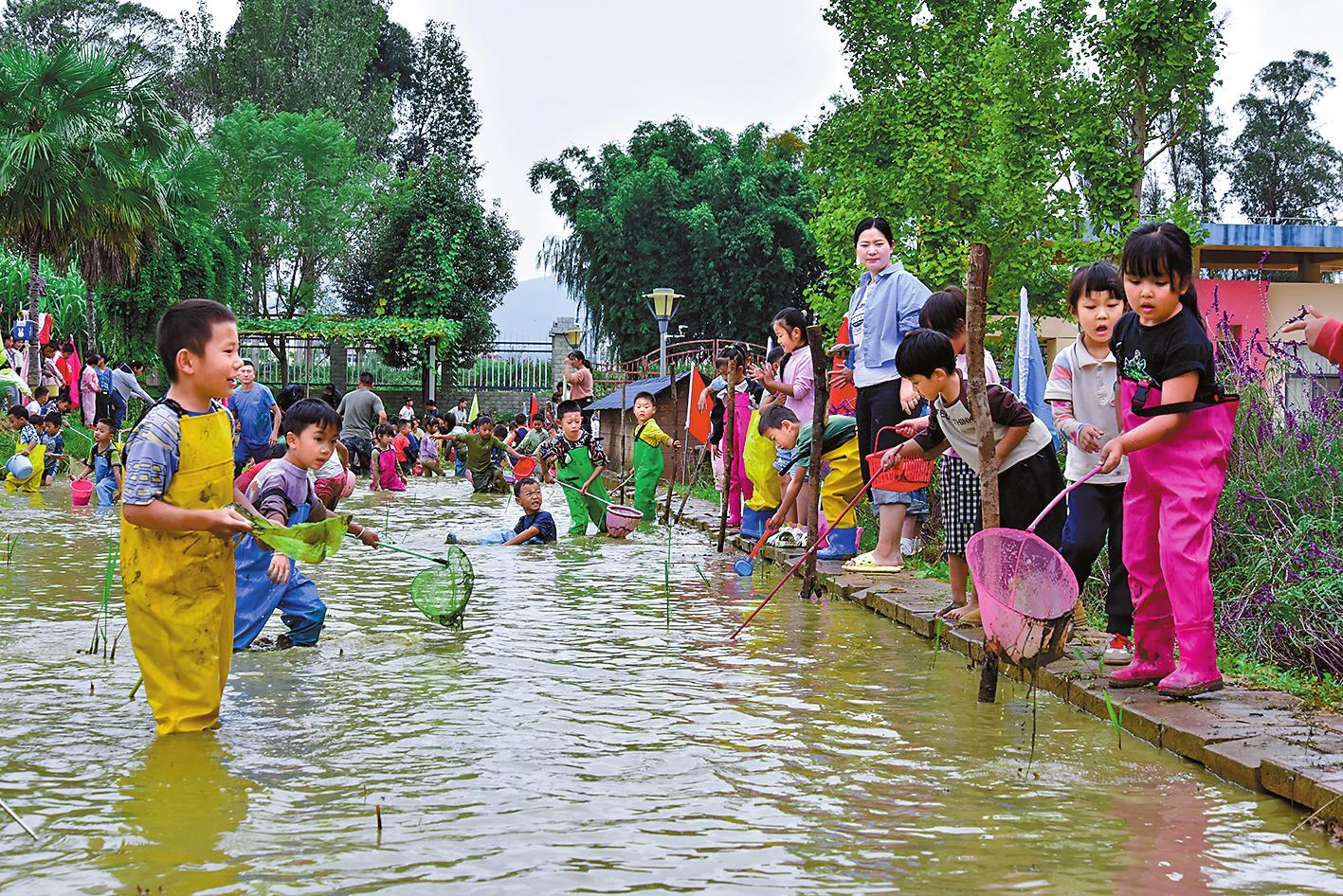 稻田间,幼儿在老师与家长的带领下赤脚插秧、捕捉稻花鱼,笑声伴着水声荡漾;竹编工坊里,学生指尖翻飞,竹篾化作兼具实用与美感的篮筐;校园责任田边,师生合力采收蔬果,丰收喜悦映红脸庞……这些鲜活场景,是玉溪市中小学、幼儿园深耕劳动教育的日常写照。 近年来,玉溪市深入贯彻习近平总书记关于劳动教育的重要论述,市关工委、市教育体育局、市农业农村局协同发力,盘活校内外多元资源,打破课堂教学、田间实践、生活应用间的场景壁垒,构建起“五育融合、全域覆盖、特色鲜明”的劳动教育体系,让劳动教育成为立德树人的生动实践。