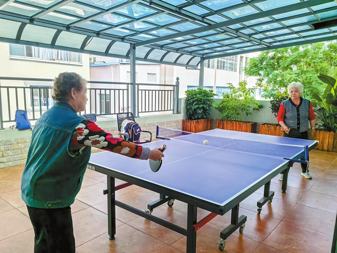 一种集“居家服务、日间托养、健康管理、文教旅居”于一体的“四维一体”普惠养老新模式,近日在红塔区凤凰街道综合养老服务中心(以下简称“中心”)推行。这种模式悄然改变着辖区老年人的生活方式,托举起他们“不离亲、不离家”的幸福晚年。 全力打造银发社交圈 走进凤凰街道综合养老服务中心,一楼的棋牌区人气十足。老人们或组局麻将,或对决扑克,或在棋盘边凝神对弈,落子声与谈笑声此起彼伏。“我在这儿认识了不少新朋友。”91岁的居民普家和说,自己下午经常来会友、下棋。 二楼健康养生课堂上,老人们聚精会神,不时举手提问;三楼乒乓球桌前,几位老人挥拍自如,身手利落。整栋楼从无障碍电梯、防滑地板到专用卫生间,每一处细节都体现着对老年人的关怀。“中心服务很贴心,随时都有饮用水,吃饭、如厕都很方便。”正在运动的王阿姨表示。 中心负责人吕俊儒介绍:“我们发现许多老人最需要的是陪伴和交流。为此,我们设置了棋牌室、阅览室等,为老年人提供一个交友平台,让每位老人都能找到属于自己的朋友圈。”
