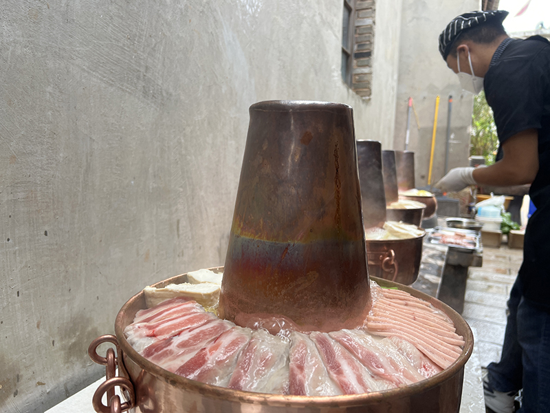 初冬时节,寒意渐浓,在玉溪市江川区,一锅热气腾腾、香气四溢的炊锅菜,宛如暖阳温暖着游子的心,也吸引着八方食客。这道传统的特色美食,不仅承载着江川人许多温馨的记忆,更成为当地饮食文化的一张亮丽名片。 走进位于宁海街道海浒社区下海浒二组的将军第,这座始建于1932年的老宅,青砖灰瓦间满是岁月的痕迹。从这里走出的金汉鼎将军,曾投身重九起义、护国运动等重大历史事件,为国家兴亡挥洒热血。2022年,沉寂多年的老宅以餐饮店的新身份开放,后人在这里经营炊锅菜等当地美食,传播先辈的爱国故事,让历史在烟火气中延续。 在这里,对历史的回味远超饮食本身。斑驳的木雕、古朴的天井、墙上泛黄的老照片,无不在诉说着老宅往昔的荣光。将军第负责人金楠凌会向客人讲述金汉鼎将军的故事,让食客在享受美食的同时,感受历史的厚重。 “对江川人而言,炊锅不仅是美食,更是情感的载体。许多江川籍的归乡游子,都要来此尝上一口‘家乡味’,在炭火慢煨间,让时光放缓脚步,让乡愁得以慰藉。”金楠凌告诉记者。 在江川,人们习惯称当地传统铜火锅为炊锅,用其烹制的菜肴叫炊锅菜,相传已有上百年历史。炊锅菜的制作,堪称一场融合多种食材的烹饪艺术。汤底是灵魂所在,需用老鸭、鸡肉和排骨慢火熬制两小时,老鸭提鲜,鸡肉和排骨增甜,这便是汤底鲜甜的秘诀。放菜顺序也大有讲究,先铺上耐煮的萝卜、藕,注入高汤后,向火管内放入烧红的木炭;待汤煮沸,依次加入毛芋头、洋丝瓜、芹菜、山药、白菜;最后铺上三线肉、臭豆腐、午餐肉与莴笋片。全程近两小时,一锅层次分明、汤鲜菜糯的佳肴便烹制完成。 一锅美味的炊锅菜,食材的味道在锅中相互交融,萝卜吸饱汤汁后清甜爽口,臭豆腐散发独特香气,三线肉肥瘦相间、肉香四溢……每一口,都是江川独有的风味。而蘸水则是点睛之笔,江川传统炊锅菜蘸水由煳辣椒、葱花、香菜、大蒜等调料配制而成,浇上鲜美汤汁,煳辣椒的独特辛香瞬间唤醒味蕾,让人在咀嚼中感受香辣与鲜香的交融,直呼过瘾。 对于江川人来说,炊锅菜是特色家常菜,每逢佳节或亲友聚会,总能看到它的身影。长辈围坐锅旁谈笑,炊锅菜香气弥漫,承载着无数温馨回忆。随着生活水平提高和地方餐饮业发展,许多江川人将这门手艺带进餐馆,让炊锅菜走出家庭,成为城市餐桌的佳肴,让更多人品尝到独特的江川风味。 如今,一锅炊锅菜,以其独特的味道和深厚的文化内涵,吸引着越来越多的人走进江川,品味这份传承百年的烟火温情。 |