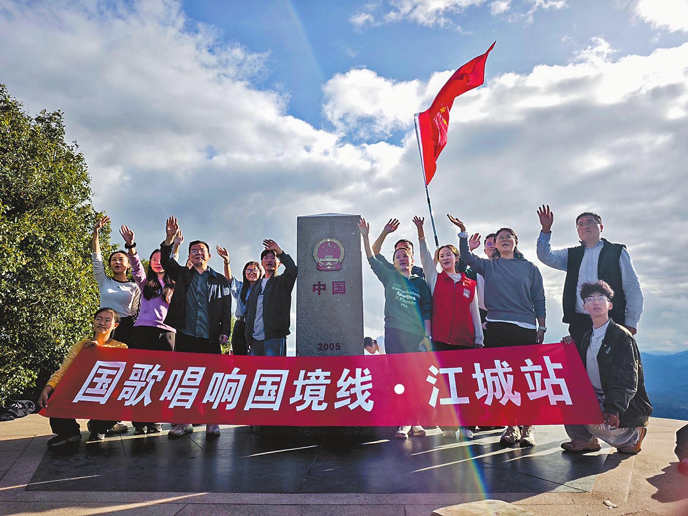 本报讯(记者 宋蝶 文/图)11月6日至7日,由玉溪市委宣传部与玉溪师范学院联合主办的学习宣传贯彻党的二十届四中全会精神暨“国歌唱响国境线·江城站”新时代文明实践活动,在普洱市江城县开展。活动围绕学习贯彻党的二十届四中全会精神,以铸牢中华民族共同体意识为核心,通过红色宣讲、推普教学、文化交流、齐唱国歌等多元形式,让激昂的国歌声传至国境线,让红色文化的韵味温暖边疆人民的心,为“兴滇润边新时代文明实践带”建设注入了青春活力。 在江城县曲水镇的边境村寨,玉溪师范学院师生主动担当起“流动宣讲员”与“领唱老师”的角色,逐字逐句地为村民示范发音、纠正语调,带领村民一同唱响国歌。“平时很少与外界接触,今天老师一字一句教我们唱国歌,不仅学会了标准唱法,更感受到了国歌背后的力量。”曲水镇坝伞村村民施玉兰说。70多岁的曲水镇怒那村村民朱正云也激动地说:“我六七岁就会唱国歌,但这样集中合唱的机会太少了,能参加这个活动心里特别开心。” 在位于曲水镇十层大山之巅的中老越三国界碑前,一场庄严肃穆的唱国歌仪式正在进行。师生们整齐列队,面向祖国,神情庄重地肃立着,随后齐声高唱国歌。激昂旋律划破山林宁静,既抒发了对祖国的赤诚热爱,更彰显了“守护国土、强国有我”的坚定信念。“此次在界碑前深切感受到祖国强大与边疆群众的爱国情怀,学生们也在实践中增长才干、坚定信心。这场特殊的‘边境思政课’,让家国情怀在歌声中升华。”玉溪师范学院马克思主义学院院长、教授时遂营说。 在校园里,一系列特色活动也在如火如荼地展开。在江城县思源实验中学的“三国边城·红韵推普”研学活动中,充满趣味的《三字经》韵律操、声情并茂的边塞诗朗读等环节,让学生们在沉浸式体验中提升普通话能力、厚植爱国守边情怀;在江城县职业高级中学的“中老友谊深·文韵传情”活动中,汉字游戏、甲骨文探秘、香囊手作等内容,让老挝学生亲身领略到了中华优秀传统文化的魅力,进一步深化了两国之间的情谊。 此外,活动期间还同步开展了党的二十届四中全会精神宣讲和主题讲座。通过深入浅出的讲解,让边境群众更加深入地了解国家政策,切实感悟到政策所带来的温暖,从而凝聚起更为广泛的思想共识。 据悉,“国歌唱响国境线”项目是玉溪师范学院精心打造的“聂耳和国歌的故事”宣讲品牌项目。自2017年开展以来,已先后组织269支队伍3873人次深入云南边境地区开展活动,累计惠及上万人次。本次江城之行,既是学习贯彻党的二十届四中全会精神的具体实践,也是参与“兴滇润边新时代文明实践带”建设的生动缩影。通过此次活动,以青春之力守护边境安宁、促进文化交融,让红色血脉在国境线上代代相传,绽放出更加绚烂的光彩。 |