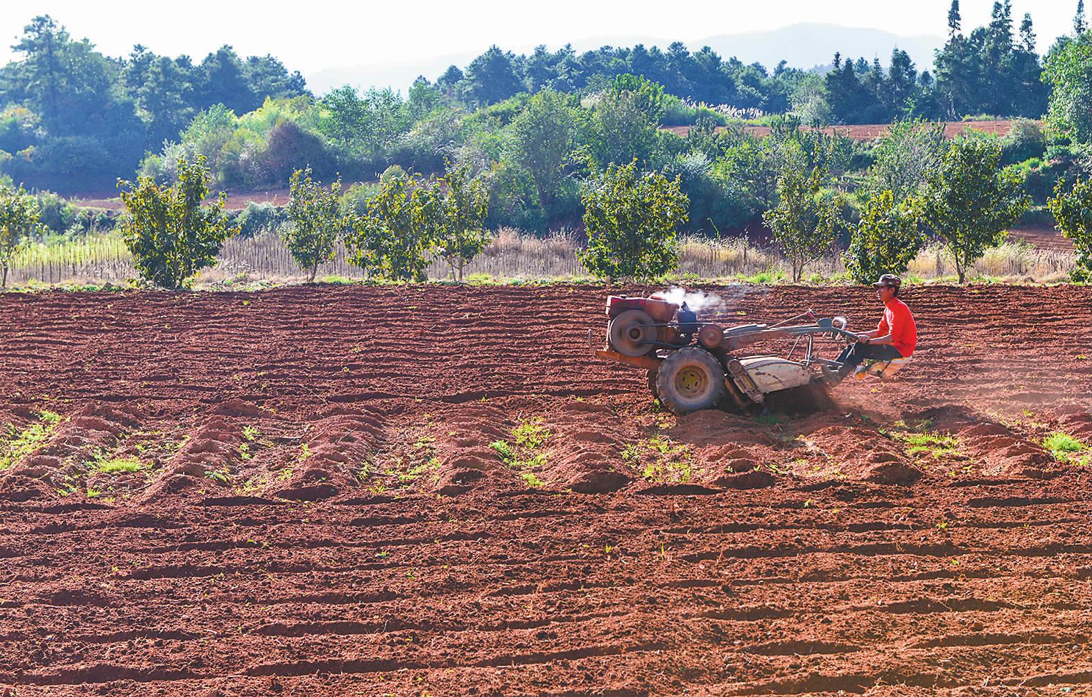 11月15日,在红塔区北城街道大石板社区椒园小组,村民蔡仕强正驾驶拖拉机翻耕烟地,准备种植菜豌豆。北城街道山地占80%,为了增加山区群众收入,街道十分重视秋冬农业开发,烟叶采收完后即加强农作物种植规划,实施农技培训,加快种植油菜、菜豌豆等秋冬作物,通过轮作土地,减少病虫害发生,提高土地利用效率,增加群众收入。目前已种植秋冬农作物近9000亩。
