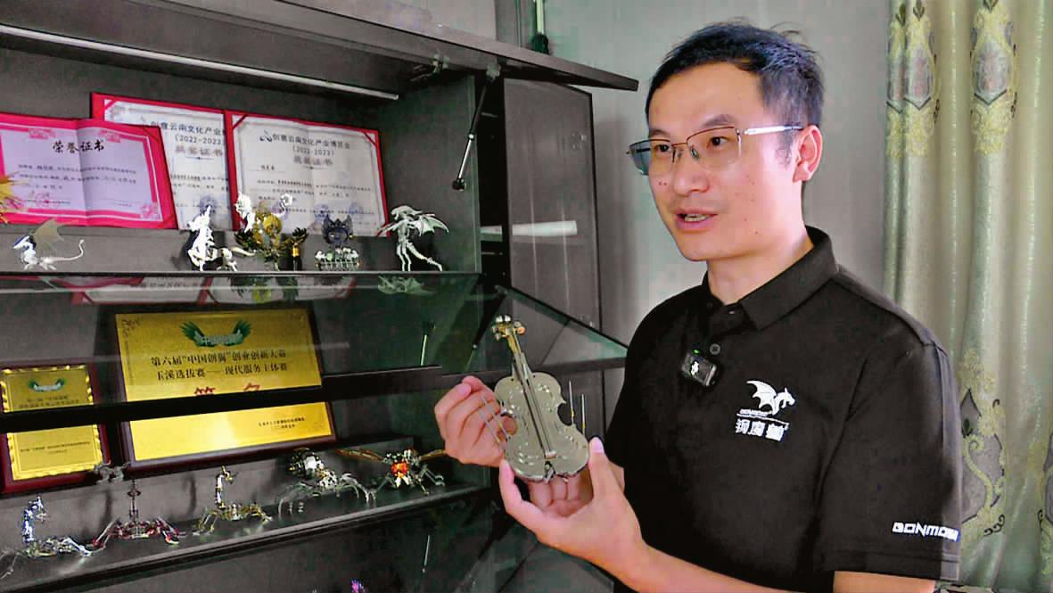 □ 本报记者 谢云坤/文 邝晓林 史桦/图 在通海县杨广镇镇海村委会杨家营村一座不起眼的厂房里,一块块冰冷的不锈钢钢板正被赋予“生命”——它们经过切割、打磨、拼装,变身成精美酷炫的各种动物模型、云南省博物馆镇馆之宝大鹏金翅鸟、能“射箭”的聂耳小提琴模型、美轮美奂的通海聚奎阁……这些被称作“钢魔兽”的金属拼装立体模型,不仅远销欧美、东南亚,年销售额超400万元,更让“80后”创客杨昊承实现了“把爱好做成事业”的梦想,书写了一段从中专生到“兴玉技能大师”的创业传奇。 从解闷手工到中国版乐高 杨昊承出生于1982年,现为钢魔兽(云南)模型艺术有限责任公司的负责人,也是一位把金属玩出了新高度的企业家。他一心生产精美耐玩的金属拼装模型,致力于打造中国版的乐高。公司原创的“钢魔兽”系列产品,从视觉到质感都独树一帜,目前有幻兽、侏罗纪、经典、昆虫、机械、古建筑等8大系列100多款产品,大部分远销至欧美、东南亚等地区,年销售额超400万元。 “这款‘蝎子王’有300多个零件、100多组螺丝,全身关节都能活动,在欧美市场比较受欢迎,占我们销量的60%左右。”在钢魔兽(云南)模型艺术有限责任公司的展示区,杨昊承拿起一款做工精致复杂的金属模型介绍道。而“蝎子王”旁边的聂耳小提琴模型更具巧思:它根据聂耳的小提琴样式精心设计制作,琴身可变形为弩机,拉开橡皮筋就能射出一支金属“弩箭”。“玉溪是聂耳的故乡,聂耳用音乐做武器救国救民,我们就想到把这个理念融入设计,让‘乐器’变身‘武器’。”杨昊承说。 作为土生土长的通海人,杨昊承的“钢魔兽”里始终藏着家乡情怀。为让通海古建筑走出云南,他耗时半年精心设计,用1000多个零件,以1∶25的比例复刻了通海地标建筑聚奎阁。“熟练工人拼装完聚奎阁都要三天,外观还原度超过80%,看起来非常漂亮,几乎和实物一模一样。”他说。 不同于市面上的塑料、木质模型,“钢魔兽”坚持用304不锈钢做原材料。在金属的冷冽与创意的炽热碰撞中,钢魔兽金属拼装立体模型横空出世,它不仅仅是一款工业产品,更是一次硬核的原创艺术之旅。一开始,杨昊承选用201不锈钢做原材料,但发现耐腐蚀性还是不够强,最终改用材质更好、价格也更贵的304不锈钢。“虽然每吨成本从8000多元涨到1.1万元至1.3万元,但304不锈钢更牢固、更不易氧化,表面光泽度也更好。”杨昊承介绍。这份对产品质量的执着,正是“钢魔兽”能在市场站稳脚跟的关键。 “兴玉技能大师”的成长之路 2024年,42岁的杨昊承获得玉溪市“兴玉技能大师”的光荣称号。可谁能想到,这位精通设计、能熟练操作各类设备的“大师”,早年只是一名中专生。 杨昊承的人生转折,始于家庭变故。初中时,父亲下海创业失败,导致家里背上30多万元的外债,他只能放弃高中,选择读中专学校的市场营销专业;毕业后,他从药店的一名普通营业员干到店长,再靠药品代理赚到人生的“第一桶金”——依靠做药品代理生意,杨昊承迅速赚到了几百万元,20多岁就在昆明买车买房,一时风光无限。 可命运的考验接踵而至:2008年药品生意遇冷,他转型做培训学校,却赔得一干二净。“最低迷的时候,我把自己关在家里,靠做手工打发时间。正是在这段时间里,我发现成人手工产品稀缺,便试着自己画图,做金属模型。朋友看了都说好,我才想着把爱好变成事业。”杨昊承说。 早在2014年,杨昊承就和两位朋友共同创立了一家小公司,开始设计生产金属拼装模型,但因为产品知名度不高,销量平平。到了2016年,公司参与京东产品众筹,打开了销路;又在2017年参加了山西卫视的创业节目,吸引到一笔投资。没想到的是,两位合伙人此时却与杨昊承产生了分歧甚至是矛盾,最终杨昊承选择退出,改行卖起了水果。后来在朋友的劝说下,杨昊承东山再起,于2021年正式建立了钢魔兽(云南)模型艺术有限责任公司,专门设计生产金属拼装模型,以精美的设计、过硬的质量,在竞争激烈的金属拼装模型市场脱颖而出。 “展会上,我们对面展位的同行用薄金属做模型,客户们觉得容易变形,而我们的产品一上手,他们都惊叹‘哇,好有质感’。”杨昊承说。这几年,他的“钢魔兽”产品在各种展会上多次获奖,公司也获评云南省科技型中小企业。 用金属讲述艺术故事,以匠心铸就未来梦想。十多年来,杨昊承活成了“拼命三郎”:不会画图就学,不会AE软件就学,不会操作新机器也要学。“从设计软件门外汉到能独立开发产品,都是逼出来的。”他笑着说。 扎根家乡谋发展 如今,杨昊承的公司已形成了“昆明设计、通海生产、上海销售”的生产经营模式。通海生产基地24小时三班倒,15名员工多是杨家营村村民,月均工资超3500元。“离家近,能上班还能照顾家,比外出打工好。”员工杨秀萍说。 杨昊承的厂房是自家老宅改造的,未来他还有更大的计划:投资2800万元,依托通海工业背景,在杨广镇打造云南首个“沉浸式”工业文化主题研学园区,集工业研学、艺术体验、亲子共创、文旅休闲于一体,这样既能把公司做大做强,又能为家乡发展作出更多的贡献。“自己富了不算什么,能为家乡做点事更有意义。”杨昊承说。 “‘钢魔兽’不仅为通海带来了税收和就业,更把聚奎阁、文明牌坊等通海元素带到文博会、南博会上,让更多人认识通海、了解玉溪。”通海