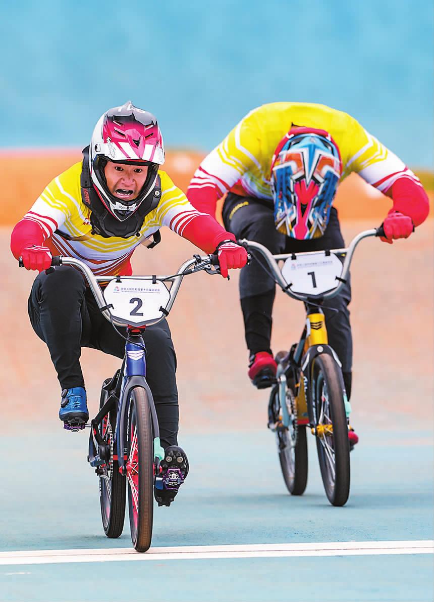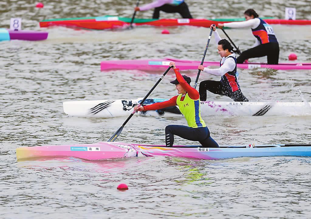 | | | 11月19日,山东队选手林浩超(左)在比赛中冲过终点。他获得冠军。当日,第十五届全国运动会男子竞速小轮车决赛在深圳举行。新华社记者 丁汀 摄(新华社11月19日发) |  | | | 11月19日,贵州队选手帅常文(下)在比赛中。最终她夺得冠军。当日,第十五届全国运动会皮划艇静水项目女子200米单人划艇决赛在广州举行。新华社记者 杨世尧 摄(新华社11月19日发) |  | | | 11月19日,冠军山东队选手齐迎(中)、亚军河南队选手杜宇(左)和季军上海队选手李成在赛后庆祝。当日,第十五届全国运动会射击项目男子飞碟多向决赛在广州举行。 新华社记者 潘昱龙 摄(新华社11月19日发) |