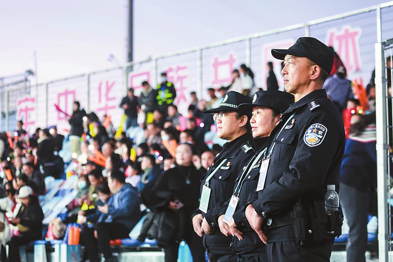 “超”全面的守护 场外5个主要安检区、60道智能安检门确保球迷和观众进场快速又安心。场内94个看台区,分区域定人、定岗、定责管理,做到全程守护,让球迷和观众安心尽享观赛乐趣。看台区执勤民辅警做好现场秩序维护,引导球迷和观众有序入场、对号入座。严格管控赛事现场及周边空域,及时排查消除安全隐患,确保赛事空域安全,全力守护“头顶安全”。