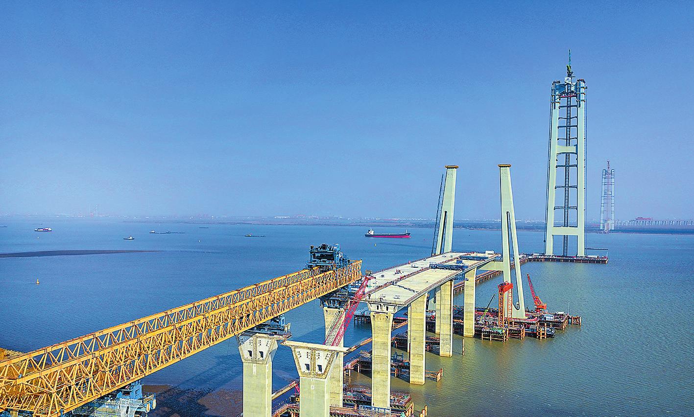 12月1日,由江苏省交通工程建设局建设、中交二航局承建的张靖皋长江大桥南航道桥南主塔上横梁精准合龙,成功实现封顶,标志着大桥南航道桥南北主塔主体工程施工全部完成。张靖皋长江大桥连接江苏苏州、泰州和南通,跨江段全长7859米,设置南、北两座航道桥及南中北三段引桥。