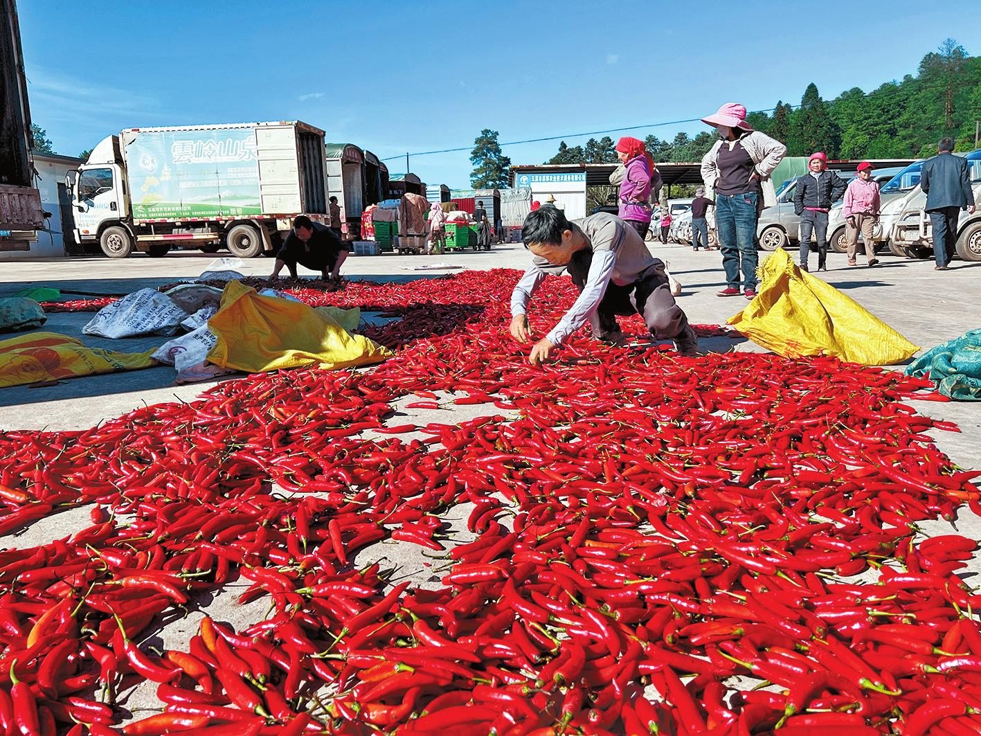 每年的辣椒丰收时节,红塔区春和街道黄草坝村的农产品交易市场都是一片繁忙,小货车、大卡车络绎不绝,收购商们忙着筛选、称重、装车,新鲜采摘的美人椒从这里启程,销往省外乃至出口海外。 “辣椒采收高峰期,市场每天成交量能达200多吨,交易额超100万元。”市场管理人员普文全介绍。收购商谭玉福一边核对货物一边说道:“今天已收购5吨辣椒,价格稳定在每公斤4至5元。规范的交易市场不仅大幅提升了收购效率,也确保了辣椒品质优良。” 在不远处的田地里,村民肖剑正麻利地采摘着辣椒,脸上洋溢着丰收的喜悦。“以前种植辣椒,销路狭窄、价格波动大,还时常遭遇滞销困境。如今村里建起了交易市场,实现了现摘现卖,今年这5亩辣椒预计能收入5万多元。”肖剑说。像肖剑这样的受益农户,在黄草坝村还有1400余户。如今,黄草坝村的美人椒亩产可达550至600公斤,年产值预计突破1400万元,火红的辣椒已然成为村民增收的“钱袋子”。 这份丰收的背后,离不开基层党组织的精准施策与联农带农机制的持续赋能。黄草坝村虽有种植辣椒的传统,但过去“小农户”面对“大市场”时,分散种植、销路不畅、议价能力弱等问题突出。为摆脱这一困境,村党总支主动扛起责任,党员干部带头调研市场、走访农户,积极争取政策支持,整合资源建成标准化农产品交易市场,划分专门交易区域,将分散的种植户凝聚成发展合力,彻底告别了路边摆摊的历史。 不仅如此,村党总支还通过“田间课堂”开展种植技术培训,培育“土专家”;推进道路硬化等基础设施建设,打通辣椒出山的“致富路”;牵头对接外地市场,为种植户和收购商搭建产销桥梁,让黄草坝美人椒既实现了规模销售,又打响了品牌。随着交易市场的辐射带动,村里的四季豆、菜豌豆等其他农产品也实现集中销售,真正形成了“一业兴、百业旺”的良性循环。 2022年5月,黄草坝村成立玉溪高寒绿特农业发展有限公司,依托绿色生态优势,发展腊肉、香肠、土鸡蛋、土蜂蜜、酱菜等土特产品的加工生产与销售业务,今年预计可带来20多万元的毛利润。 “‘十五五’规划建议提出,开发农业多种功能,推动农村一二三产业深度融合,培育壮大乡村特色产业,完善联农带农机制,促进农民稳定增收。下一步村党总支将扩大农产品交易市场规模、完善配套功能、提升市场承载力,同时扩大优质品种种植规模,让更多农户共享产业发展红利。”黄草坝村党总支副书记殷美琴表示。 |