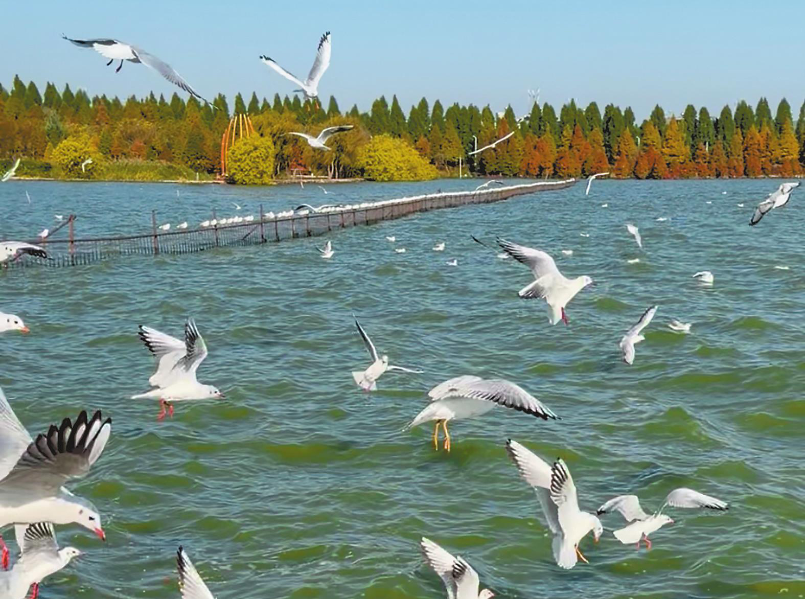本报讯(记者 田一岚 常云 文/图)随着冬季的到来,红嘴鸥如期抵达江川星云湖过冬,这些可爱的小精灵不仅为冬日的星云湖带来了生机,也将为滇超联赛观赛之旅增添别样乐趣。 近日,星云湖畔成群结队的红嘴鸥鸣声阵阵,有的在空中飞舞,有的在水中游荡,还有的一排排整齐地歇在木桩上,勾勒出一幅美丽和谐的冬日画卷,吸引了众多市民、游客及摄影爱好者前来赏鸥、拍照。市民表示,滇超联赛已经拉开帷幕,远道而来的球迷朋友在观赛之余,还可以到星云湖,开启“观球+赏鸥”的双重惬意之旅。 这个冬天,以鸥为媒,以球会友,让赛场的激情与星云湖的浪漫双向奔赴,解锁观赛之外的治愈时光。同时,提醒大家,文明赏鸥,文明投喂,守护好生态环境。 |