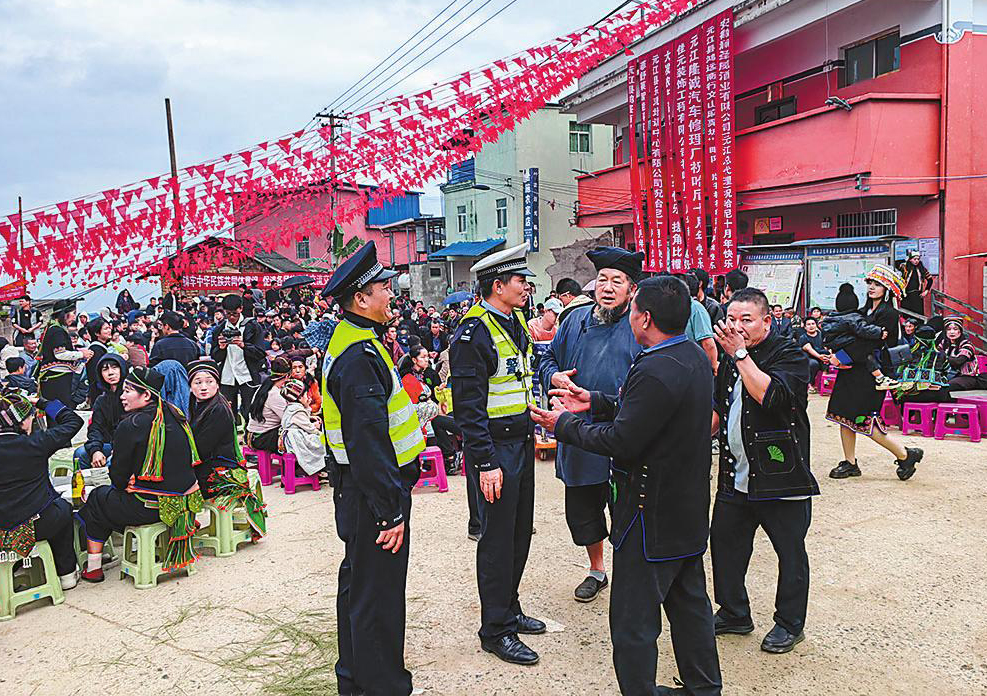 当晨雾云海漫过哈尼梯田,将层层叠叠的田垄染成流动的画卷;当棕扇舞的银饰叮当与鼓点响彻山寨,唤醒每一寸丰收的土地,元江县哈尼族群众正忙着舂响糯米、杀猪宰鸡,烹制各种美味佳肴,在炊烟与欢笑声中,迎来最隆重的哈尼“十月年”。 这场辞旧迎新的狂欢里,元江警方的“荧光绿”与“藏青蓝”是最安心的底色。他们穿梭在蜿蜒的山路间、喧闹的集市上、温暖的篝火旁,把“时时放心不下”的责任感,化作每一次耐心疏导、每一趟细致巡逻、每一回及时帮扶。一道坚实的平安防线悄然筑起,让稻谷满仓的喜悦、阖家团圆的温情,在稳稳的安全感中尽情流淌。 云端筑屏障,把稳山路平安舵 哈尼山寨大多依山而建,蜿蜒的山路在晨雾与云海中若隐若现,“山路十八弯”的独特地貌本就对通行安全提出考验。哈尼“十月年”期间,承载着乡愁的返乡车流与追寻梯田美景的游客车流双向交汇、叠加攀升,更让山区道路的交通安保工作成为守护群众平安的重中之重。 为破解车流高峰通行难题,元江警方提前谋划,依托历史交通数据,制定全方位安保方案,将80%以上警力充实到一线执勤,在元车线起点等重要路段设置16个固定岗,每个岗配备3至4名警力专职负责交通指挥与疏导。针对易拥堵路段,严格落实“一路段一方案”定制化管控,全方位保障道路通行安全有序。 清晨的梯田晨雾轻挟,哈尼山寨升起袅袅炊烟,执勤民辅警提前到岗。他们手持警哨、挥动手势,耐心引导车辆有序通行。11月29日8时许,那诺水库附近路段开展道路施工,散落的施工杂物给通行安全埋下隐患。为保障过往车辆、行人顺畅出行,民辅警第一时间赶赴现场,细致清理路面障碍,确保施工路段交通安全。 正午时分,村民家中的糯米粑粑蒸得香气四溢,执勤民辅警在路边简单地吃完盒饭,立刻转身投入交通疏导工作。从清晨的迷雾缭绕到深夜的星光点点,那抹流动的“荧光绿”始终坚守岗位,守护着哈尼族群众的出行平安,也守护着每一份奔赴家园的温暖。 集市护民生,守好节日烟火气 哈尼“十月年”的集市是山寨最热闹的地方,挂着红绳的腊肉、装在陶罐里的梯田鱼、浸染着植物原色的五彩糯米饭等物品摆满摊位,各族群众往来穿梭为“串寨拜年”备足礼品。为守护这份浓浓的节日烟火气,元江警方采取“守点、巡线、控面”相结合的方式,将机关警力下沉基层,加大对集市、夜市摊点等人员密集场所的巡逻频次,让群众“抬头见警、转身有援”。 针对集市周边的宾馆、商铺等重点场所,开展“拉网式”安全隐患排查,重点检查消防设施、治安防范措施,对发现的安全隐患当场督促整改,切实筑牢安全防线。同时,各派出所开启节日服务模式,户籍窗口全天候值守,为返乡群众办理身份证、户口迁移等业务。 11月29日中午,民警在棕扇舞比赛现场执勤时接到群众求助:一名小男孩与家人走失。民警立即将孩子抱起安抚,通过联系各执勤点、走访周围群众等方式,及时帮孩子找到家人。看着安然无恙的孩子,家人激动地握着民警的手连连道谢。 活动严防控,增强群众安全感 哈尼“十月年”期间,“云上那诺·和美乡村”健康跑、冬季“村晚”等系列文旅活动轮番上演,祭祀祈福仪式、棕扇舞表演、长街宴、篝火晚会等特色活动吸引了八方游客,尤其是长街宴上“人人端碗、户户添菜”的哈尼族传统,让团圆氛围愈发浓厚。元江警方严格落实“一活动一方案”,提前与当地党委、政府等联动,摸排活动场地,预估人流规模,将安保措施细化到每个环节,确保活动安全有序。 在长街宴现场,民警在宴席两侧有序值守,引导游客文明就餐;在棕扇舞表演场地,辅警坚守各自岗位,防止人流拥挤发生意外。 夜幕降临,篝火燃起,警灯在烟花的映衬下格外明亮,民警在人群中巡逻值守,及时劝阻危险行为,解答游客咨询。 为防范节日期间酒驾醉驾等违法行为,民警在重点路段设置临时检查点,采取固定点位与流动巡查相结合的方式,严查各类交通违法行为,用严格执法守护节日平安。 温情暖人心,架起警民连心桥 元江警方将便民服务深度融入安保全过程,不仅在各类文旅活动现场坚守岗位、维护秩序,更在执勤间隙主动延伸服务触角,为游客细致讲解当地民俗风情和特色,帮年迈游客搬运行李,为司机推车解围。一件件暖心实事,让警民鱼水情在节日氛围中愈发深厚,也让平安守护更有暖意。 11月29日14时许,在元车线红土坡路段,一辆小轿车因操作不当滑下路基,2名驾乘女子在车旁手足无措。正在附近执勤的民警发现后,立即安排专人疏导交通,自己则找来工具,组织现场群众合力推车。在众人的努力下,小轿车成功脱困,司机满心感激地说:“看到你们,我们就踏实了!” 节日期间,这样的暖心故事每天都在上演,帮游客找回遗失的物品、协助家长找回走散的孩子、向群众宣传反诈和禁毒知识……元江警方用实际行动诠释着责任与担当,忙碌的身影成为节日里一道温暖而安心的风景线,让每一名群众都能感受到实实在在的安全感和幸福感。 |