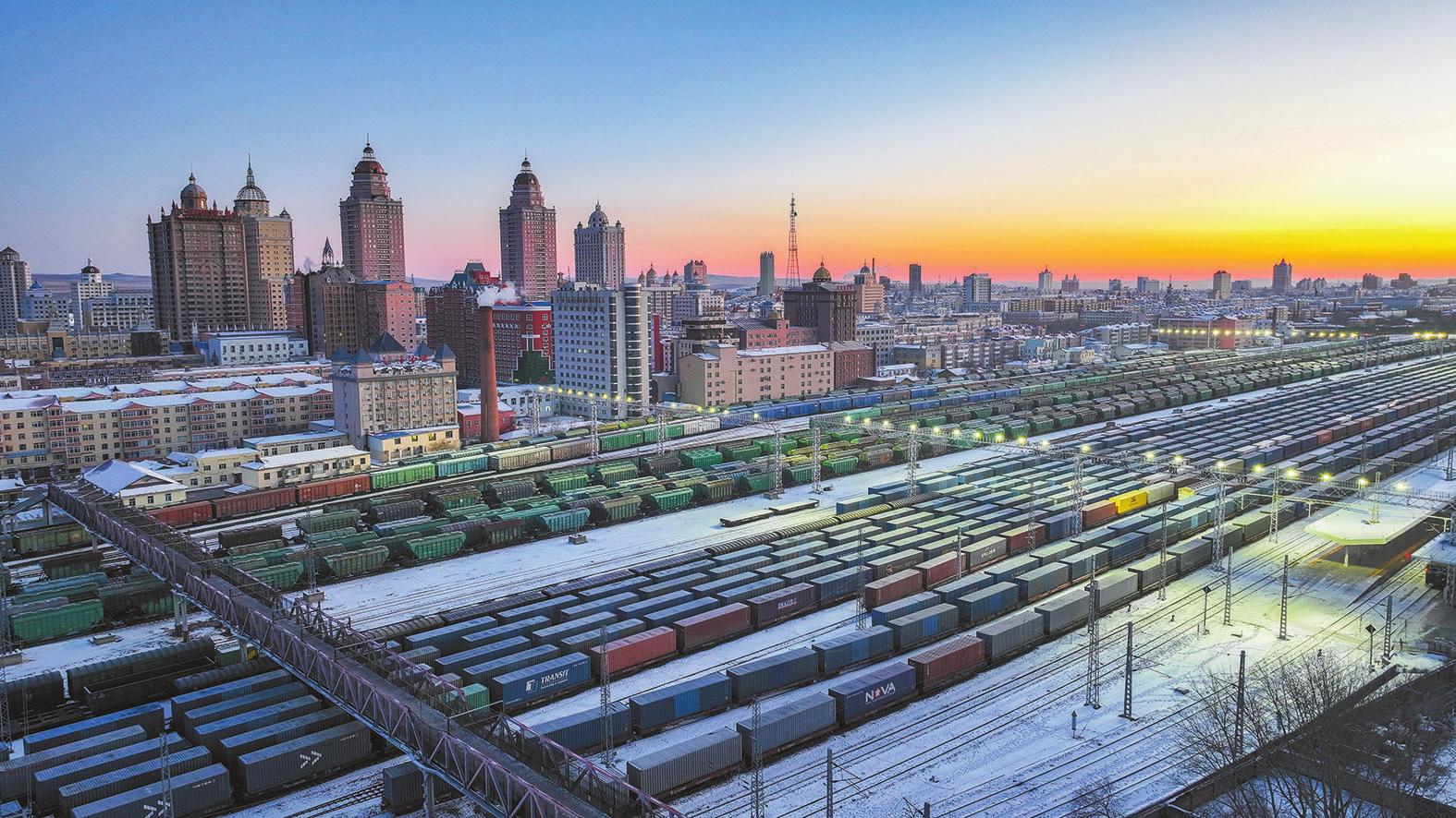 12月10日早晨,中欧班列在中国铁路哈尔滨局集团有限公司满洲里站整装待发(无人机照片)。12月10日,伴随一列编组60辆,满载家用电器和数码产品的中欧班列驶出满洲里铁路口岸,今年中欧班列“东通道”通行班列数量已达5166列,运送各类货品超53万标准箱,为服务高水平对外开放提供了强劲动能。 中欧班列“东通道”由满洲里、绥芬河、同江铁路口岸组成,目前班列运输货物品类较开行初期增至千余种,涵盖电脑、冰箱、成品汽车等高附加值产品,班列通行线路拓展到27条,覆盖波兰、德国、荷兰等14个国家,联通国内长沙、郑州、成都等60余个城市,有效助力我国外贸经济深度融入全球产业链供应链体系。 黄旭 摄(新华社12月10日发) |