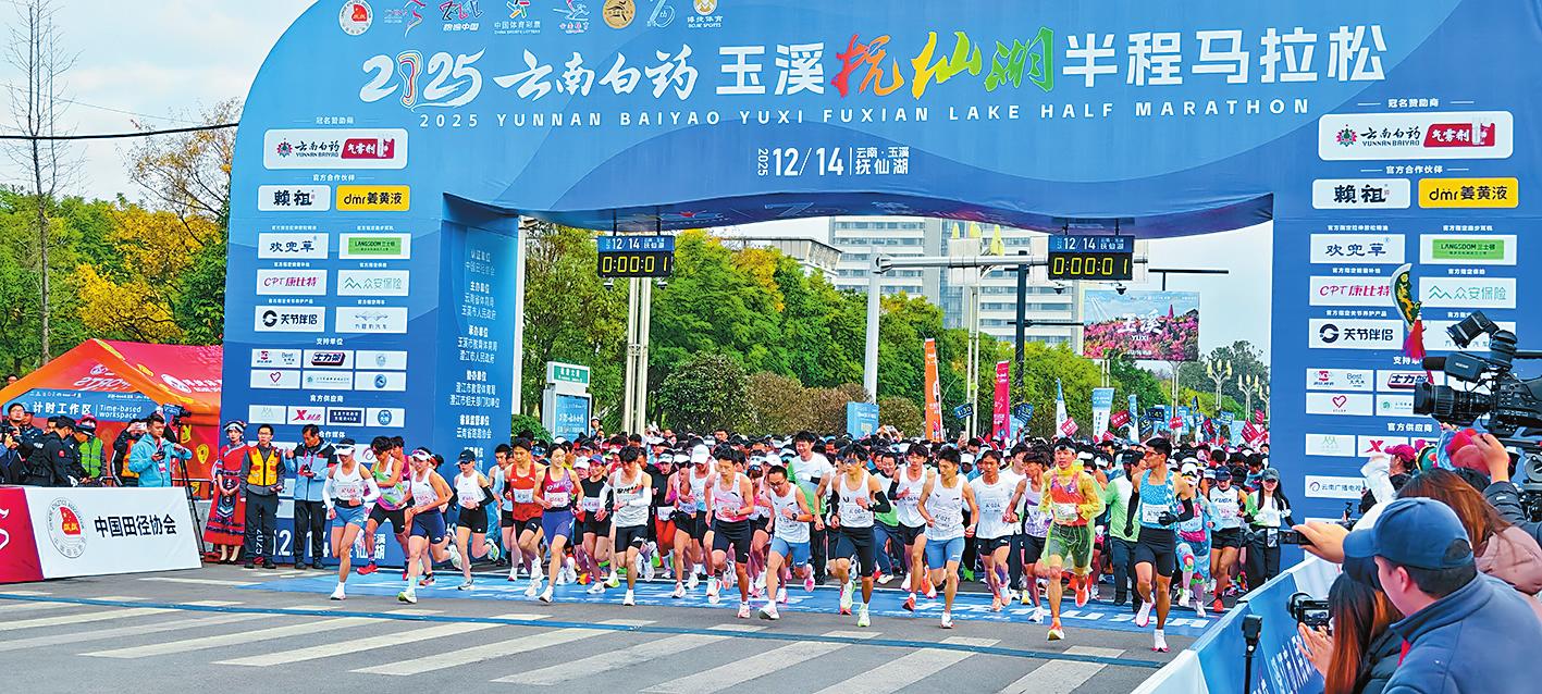 本报讯(记者 李瑞铭 文/图)12月14日上午8时30分,2025云南白药玉溪抚仙湖半程马拉松在澄江市抚澄大道鸣枪开跑,8000名跑者相聚风景如画的抚仙湖畔,共赴一场速度与美景的双重盛宴,在澄澈的湖光山色中感受运动的快乐与自然的魅力。 依托抚仙湖的生态优势,今年抚仙湖半马的赛道串联起抚仙湖周边的部分核心景观,将专业赛事标准与自然景观完美结合,参赛者们用脚步丈量21公里湖光山色,从湖岸线到生态湿地,从田园风光到民俗村落,每一步都踏在澄江冬日的画卷上,奔跑的过程成为一场沉浸式的玉溪生态文化体验之旅。 经过激烈角逐,秦仲富以1小时06分52秒(枪成绩)夺得男子组冠军,蒋发坤获亚军,杨绍辉获季军;蒋洪美以1小时16分34秒(枪成绩)夺得女子组冠军,刘甜获亚军,师余悦获季军。 秦仲富赛后接受采访时说:“这是我第二次参加抚仙湖半马,今天天气很好,自己的状态还可以,很荣幸获得冠军。玉溪的体育文化很棒,观众也很热情,赛道也好跑,有利于我们取得好成绩。” 蒋洪美去年就参加过抚仙湖半马,今天旧地重游,跑起来特别兴奋,状态很好,得以超常发挥。“抚仙湖很漂亮,跑的时候我也在一路欣赏美景,比赛结束后我要专程再好好游览一下。”蒋洪美表示。 来自昆明的参赛者陆林表示,赛道特别平,很容易刷新个人最好成绩,欢迎跑友们来玉溪抚仙湖跑步! |