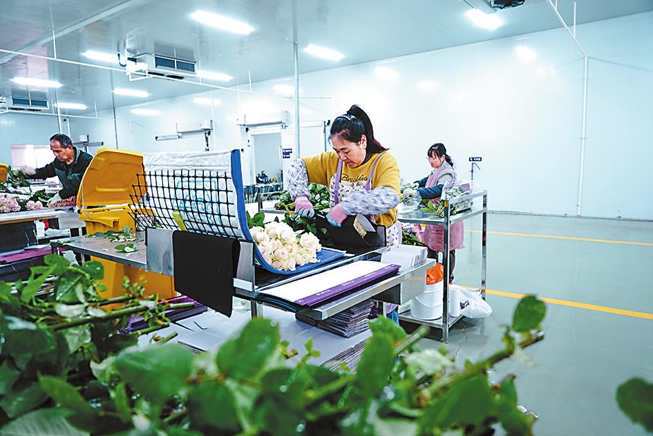 在花卉产业的发展浪潮中,红塔区立足资源禀赋、强化科技赋能,以链式思维着力打造“精品云花”产业,推动花卉产业向高端化、规模化、集约化转型,全力激活高质量发展新动能,让“云花”名片愈发鲜亮、产业活力持续迸发。 科技赋能 “红塔花卉”香飘海外 冬日,当外界还透着丝丝凉意,位于红塔区春和街道黑村社区的玉溪德悦农业花卉种植基地却是另一番生机勃勃的景象。步入现代化农业大棚,暖意扑面而来,一朵朵娇艳欲滴的玫瑰花,在精心营造的温润舒适环境中尽情绽放。 据玉溪德悦农业发展有限公司黑村基地负责人陈兴海介绍,引入智能环控与精准水肥管理技术后,鲜切花的品质得到了提升。不仅如此,在鲜花采收、剪切、分拣、包装过程中,公司还创新采用了“带水运输+保鲜液养护”模式,使鲜切花保存期延长了8至10天,极大地保障了长途运输过程中的品质稳定性。 凭借过硬的产品质量,公司产出的玫瑰花在市场上一路飘香,深受消费者喜爱。今年,在外地经销商的运营下,产品成功打入韩国、俄罗斯、哈萨克斯坦等海外市场。其中,艾莎、骄傲、洛神三款鲜切花更是成为海外客户的热门选择。截至目前,公司鲜切花出口量已超过300万枝,累计销售额超600万元,为“红塔花卉”品牌在国际市场赢得了良好声誉。 作为全省花卉种业发展核心区、全省首批花卉特色农产品优势区、全省“一县一业”示范创建县,红塔区始终坚持“大产业+新主体+新平台”的发展模式,持续优化产业布局,不断延伸产业链条,稳步提升设施化水平。截至2025年三季度,红塔区鲜切花种植面积达2.17万亩,鲜切花产量达8.66亿枝,实现农业产值8.23亿元,为高原现代农业发展注入了源源不断的新活力。