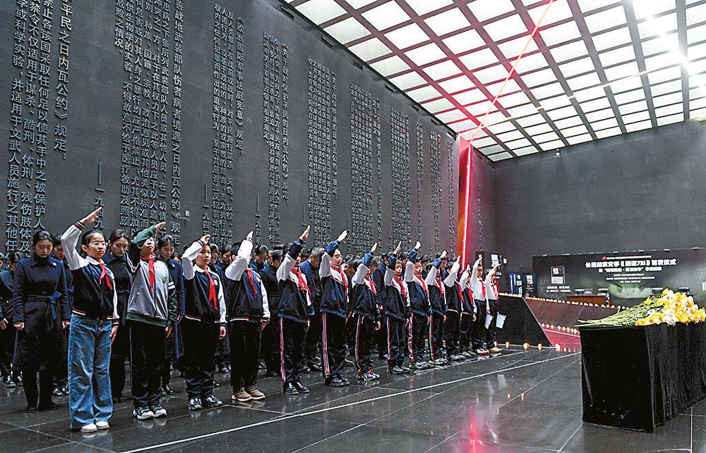12月13日,寒冬凛冽,南京迎来第十二个国家公祭日。上午10时,国家公祭仪式在侵华日军南京大屠杀遇难同胞纪念馆集会广场庄严举行,国旗半垂,哀乐低回。约8000名胸佩白花的各界代表垂首默立,防空警报撕裂长空,将人们的思绪带回88年前的黑暗岁月——30万同胞惨遭杀戮,古都南京满目疮痍。 汽车停驶鸣笛,行人驻足默哀,时间仿佛凝固。礼兵敬献花圈完毕后,6名社会各界代表共同撞响“和平大钟”,3000只和平鸽振翅高飞,寄托对逝者的哀思与对和平的追求。 “我们热爱和平,不代表我们会遗忘。”外卖骑手王计兵作为撞钟者之一,语气凝重,“钟声响起时,庄严而沉重。我们要万众一心建设好国家,历史绝不容重演。”南京大屠杀幸存者吕金宝的女儿吕瑞云手捧父亲遗像动情地说:“今天参加仪式,不仅缅怀逝者,更感受到我们祖国的强大。” 同样的哀思与铭记,在全国各地静静流淌。 哈尔滨的东北烈士纪念馆内,人们敬献花圈、静默哀悼,将南京的伤痛与这片黑土地上的抗战记忆紧密相连。黑龙江大学学生献上诗朗诵《以雪为铭》,年轻的声音铿锵有力。“我们青年一代必须从历史中汲取力量,以实际行动告慰逝去同胞,用奋斗的青春报效伟大的祖国。”朗诵者杨明昊对记者说。 在云南元阳县的山区小学,警报声穿透晨雾,回荡在群山之间。小新街乡下新寨小学全体师生低头默哀,操场上能听见风吹旗杆的声响。操场一侧的抗日战争图片展前,黑白色的史料照片、学生自制的手抄报,直观呈现着那段山河破碎的岁月。 多媒体教室内,历史电影片段让不少孩子红了眼眶。“我们现在的幸福生活来之不易,是先辈们用鲜血换来的……我要好好学习,将来用知识建设祖国。”一位学生写下观后感。小新街乡下新寨小学校长黄孝春感慨:“让孩子们铭记历史,才能懂得和平的珍贵。” 北京宛平城内,雪后的中国人民抗日战争纪念馆更显肃穆。在馆内序厅象征中华民族团结抗战的大型浮雕《铜墙铁壁》前,人们手持鲜花、肃立默哀。中国人民抗日战争纪念馆宣教专员朱宁以幸存者证言和“百人斩”罪证等,向现场众人再现南京大屠杀的历史。 “日军暴行铁证如山,但至今仍有人企图否认历史。”中国人民抗日战争纪念馆副研究馆员韩亮语气沉重。青年学子在悼念活动现场庄严宣誓,随后在12.13米长卷上留言:“不忘历史 接续奋斗”“民族复兴 国家繁荣 世界和平”…… 在千里之外的湖北十堰竹山县一所希望小学,15名学生神情凝重,通过屏幕与全国同龄人共上一堂“历史课”——2025“学历史 诵和平 共朗读”网络云班会活动。五年级学生张永瑞看完历史影像后说:“现在能平平常常上学、回家,原来这么珍贵。我要好好学习,让未来变得更美好。”校长陈永富表示,这样的活动在孩子们心中种下了珍爱和平、振兴中华的种子。 (新华社北京12月13日电) |