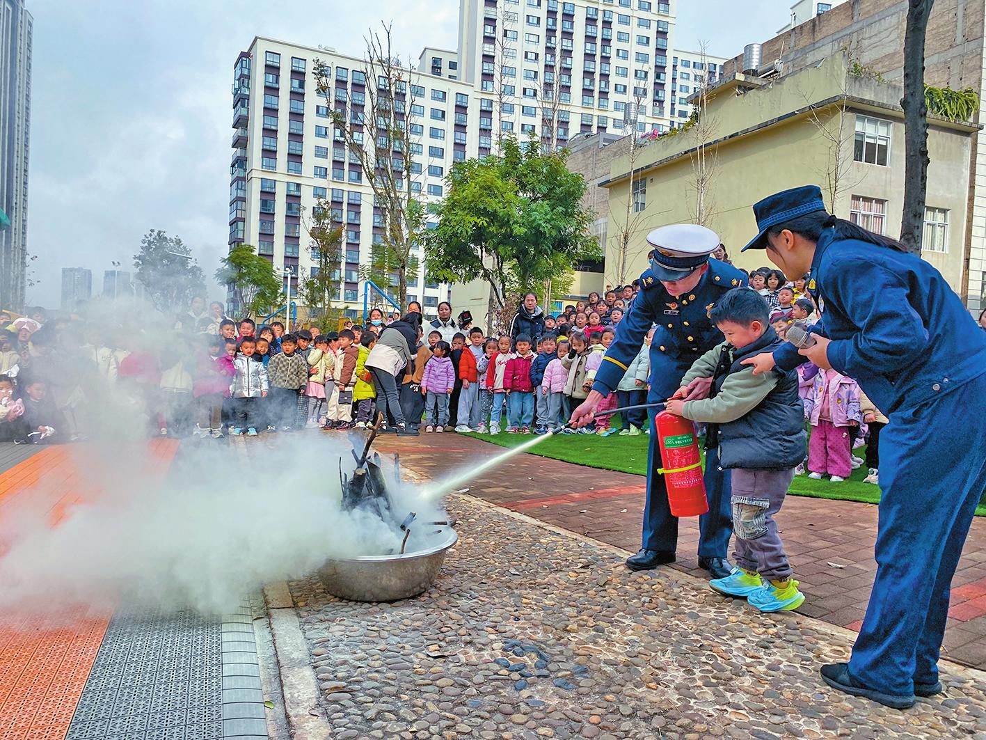 本报讯(记者 滕舒琪 文/图)12月18日,由玉溪市红塔区消防救援大队组织的火灾消防演练活动在玉溪师范学院附属幼儿园·红塔区第一幼儿园教育集团(泷水塘园区)开展,全体师生以练为战,筑牢校园消防安全防线。 上午9时30分,急促的消防警报声准时响起,演练正式启动。各班教师迅速反应,按照预设疏散方案,引导幼儿用湿毛巾捂住口鼻、弯腰低姿,沿着指定路线快速有序地撤离教室。教师们全程看护,提醒孩子们保持安全间距,避免拥挤慌乱。短短几分钟内,全体幼儿便顺利抵达操场开阔区域集合。教师们立即清点人数并汇报,整个疏散过程紧张有序、规范高效。 疏散结束后,消防员为孩子们带来了生动实用的消防安全知识。在灭火演示环节,消防员现场讲解干粉灭火器的使用原理,并邀请孩子实操体验,让大家直观掌握灭火技巧。同时,结合幼儿认知特点,消防员用通俗易懂的语言讲解火灾报警方法、火场逃生注意事项等核心知识,通过趣味问答互动,加深孩子们对消防安全知识的理解与记忆。 中(六)班的小朋友曹熙胤说:“通过演练,我知道了火灾发生时如何快速逃生,学会了怎么使用灭火器,等回家后就给爸爸妈妈科普。” 此次演练以“实战+科普”的模式,将安全教育融入实践,既提升了师生应对火灾的应急反应能力和自救互救技能,也让消防安全理念深植于心。玉溪市红塔区消防救援大队宣传干事郑菀羚说:“我们想通过教育一个孩子,带动整个家庭,最终影响整个社会,增强全体师生的安全意识。” |