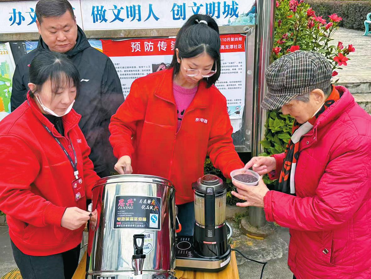 本报讯(记者 黄思敏 通讯员 许超 文/图)冬至是我国的二十四节气之一,也是一个传统节日。为让辖区居民进一步了解传统文化、感受节日氛围,12月17日上午,红塔区凤凰街道高龙潭社区联合葫田二区开展“党旗引领暖冬至 共建共享庆团圆”主题活动,让居民们在冬日里感受传统文化的温暖,增进邻里情谊。 活动现场,社区工作人员为居民送上热腾腾的饺子和八宝粥,并讲解冬至习俗。大家边品尝边交流,场面温馨融洽。现场还设立了健康咨询台,医护人员为居民提供血压测量、中医把脉和健康咨询服务,针对常见病与季节性疾病的防治进行解答,并为行动不便的老人提供上门服务。工作人员还分发了养生汤,并结合当前流感多发的情况,讲解相关预防知识。 针对行动不便的独居老人,社区同步开展了“送暖上门”行动,为他们送上饺子和八宝粥,并关切询问他们的生活近况,让特殊群体在寒冬中感受到社区的关怀。此外,活动现场还开展医保政策宣传,解答参保缴费、报销流程等问题,并发放交通安全告知信,普及安全常识。 此次活动以冬至节气为契机,通过暖心服务和互动,搭建起党群联系、邻里互助的平台,进一步营造了共建共治共享的社区氛围。下一步,高龙潭社区将在“党建+暖心”服务宗旨指引下,整合资源,探索更多特色鲜明、贴近群众的活动形式,共同营造温暖、和谐的社区环境。 |