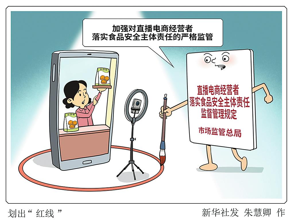 记者12月23日从市场监管总局新闻发布会上获悉,直播电商经营者落实食品安全主体责任监督管理规定将于近期发布实施,加强对直播电商经营者落实食品安全主体责任的严格监管,对直播卖食品划出“红线”。
