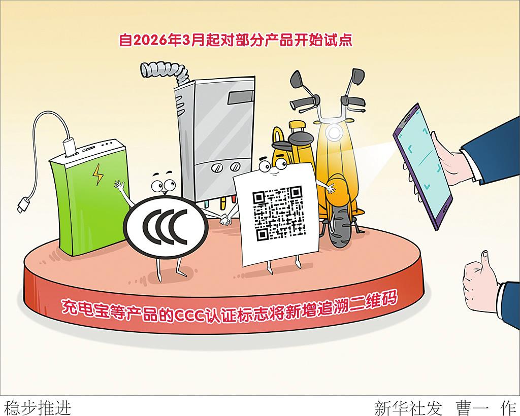记者12月22日从市场监管总局获悉,我国将对充电宝、燃气燃烧器具、电动自行车等高风险产品的CCC认证标志新增追溯二维码。自2026年3月起对部分产品开始试点,经一年过渡期后(2027年3月起)将扩大试点产品范围。