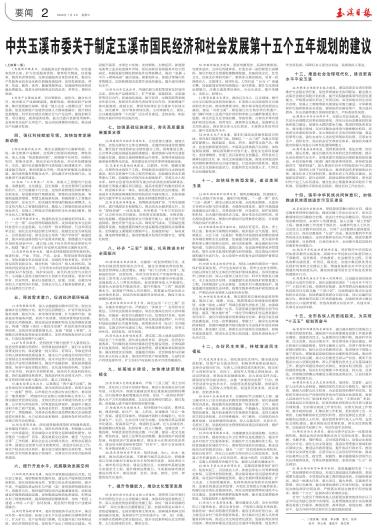 中共玉溪市委关于制定玉溪市国民经济和社会发展第十五个五年规划的建议