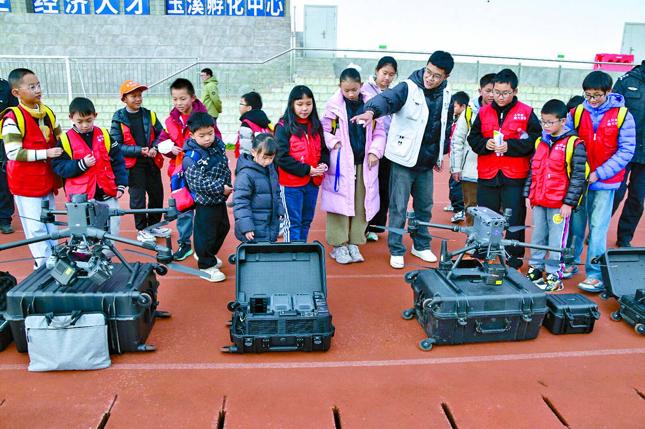 1月11日,40余名玉报小记者怀着对航空科技的好奇,走进玉溪人民警察训练基地开启了一场精彩的无人机探秘之旅,在专业指导下解锁飞行知识,感受现代警用科技的独特魅力。 活动在专业的飞行知识课堂中拉开序幕,教练通过趣味短片和实物展示,向小记者们讲解了无人机的飞行原理。“这是无人机的‘大脑’飞控系统,能精准控制飞行姿态;这是动力系统,靠电机和螺旋桨产生升力。”教练手持无人机,逐一讲解核心部件。当讲到无人机在安防救援、农业植保等领域的应用时,一名小记者举手提问:“教练,无人机在救援时能帮上什么忙呀?”教练笑着解答:“在山区搜救时,无人机能快速巡查大片区域,还能向被困人员投送物资,是救援人员的好帮手。” 理论学习结束后,小记者们迎来了最期待的模拟飞行体验环节。大家有序落座,手握操控杆,在教练的指导下学习起飞、悬停、转向等基础操作。“左手控制高度,右手调整方向,慢慢推摇杆。”在教练的耐心点拨下,小记者们成功完成了绕桩、定点降落等任务,现场不时响起阵阵欢呼。 活动中,小记者们还进行了VR“第一视角飞行”体验。戴上VR眼镜的瞬间,大家仿佛变成了“空中飞行员”,无人机飞行的实时画面清晰呈现在眼前。“太神奇了!就像自己真的在天上飞一样!”一名小记者摘下眼镜,激动地和同伴分享感受。 活动结束后,小记者们仍意犹未尽。大家纷纷表示,不仅学会了无人机操控技巧,更感受到了科技为各行各业和生活带来的改变。(通讯员 褚一州/文 张婵娟/图) |