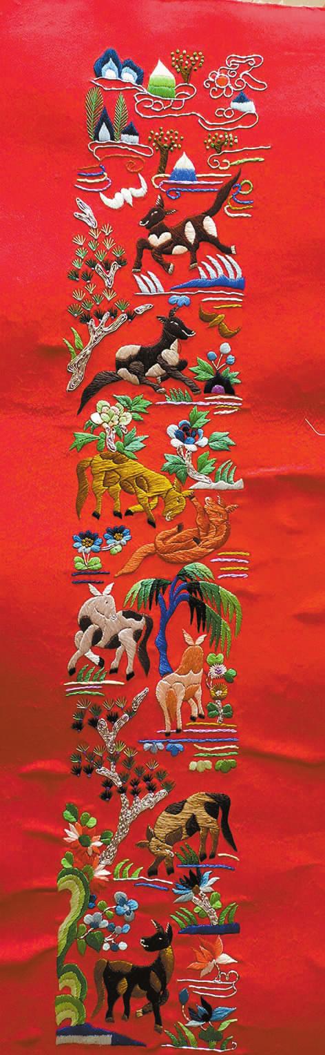 薪火相传,倾囊相授 在李绍萍的彝绣生涯里,她与多位绣娘合作完成的彝绣长卷《百花争艳图》,一直是她心中的骄傲。这幅全长37.6米、宽0.9米的巨作,在彝族手工刺绣中非常少见,而她正是这幅作品的花样绘制者与领绣人。2016年,《百花争艳图》在塔冲村开绣,在她与李莲英、高艳两位省级工艺大师的带领下,当地绣娘们携手合作,历时45天、投入1500个绣工才圆满完成。长卷中75组图案错落有致,258朵花卉栩栩如生,5种彝族传统动物图案灵动穿插,多种技法融合运用,色彩艳丽而不杂乱。如今,这幅长卷已成为富良棚乡彝绣传习基地的镇馆之宝,无声诠释着彝族女性的文化记忆与审美品位。 “刺绣是我们彝族文化的象征,不能让这门技艺失传。”这是李绍萍常挂在嘴边的话,也是她四十余载坚守的初心。只要有人上门求教,她总是毫无保留倾囊相授;县乡举办刺绣培训班,她总是欣然前往授课,先后在6个乡镇担任培训老师,指导过绣娘500余人,富良棚乡彝绣传习基地培训的3500余名学员中,不少都受过她的悉心指点。 针藏万物,线绣彝乡。在她的言传身教下,她的女儿杨霞接过了彝绣传承的接力棒。经过多年的指导与培养,杨霞被评为峨山县第二批民族民间工艺师、“十大绣娘”。 |